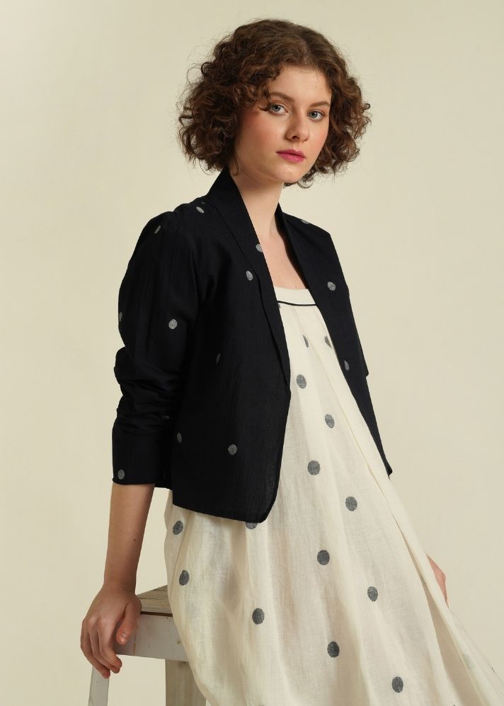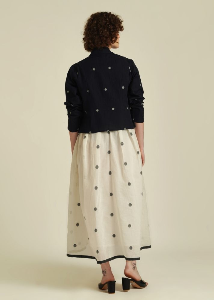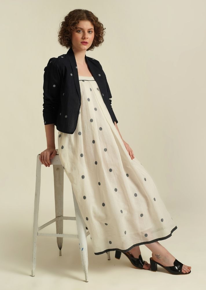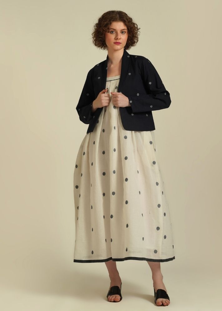 ارتدي مجموعة جامداني الكلاسيكية هذه التي تتميز بفستان بحزام المعكرونة مع طيات سكين، وسحاب خلفي للإغلاق، وسترة جامداني مفتوحة مع ياقة شال مصممة لتصفيفها بطرق متعددة. هذه المجموعة منسوجة يدويًا على يد حرفيين هنديين، وتأتي أيضًا مع حزام جامداني وبطانة مرفقة وجيوب جانبية.