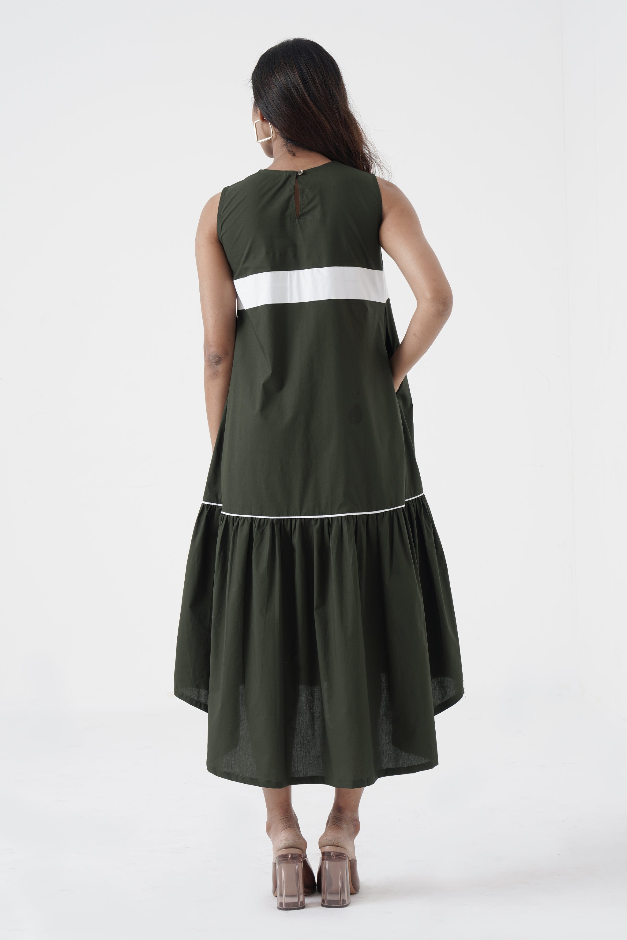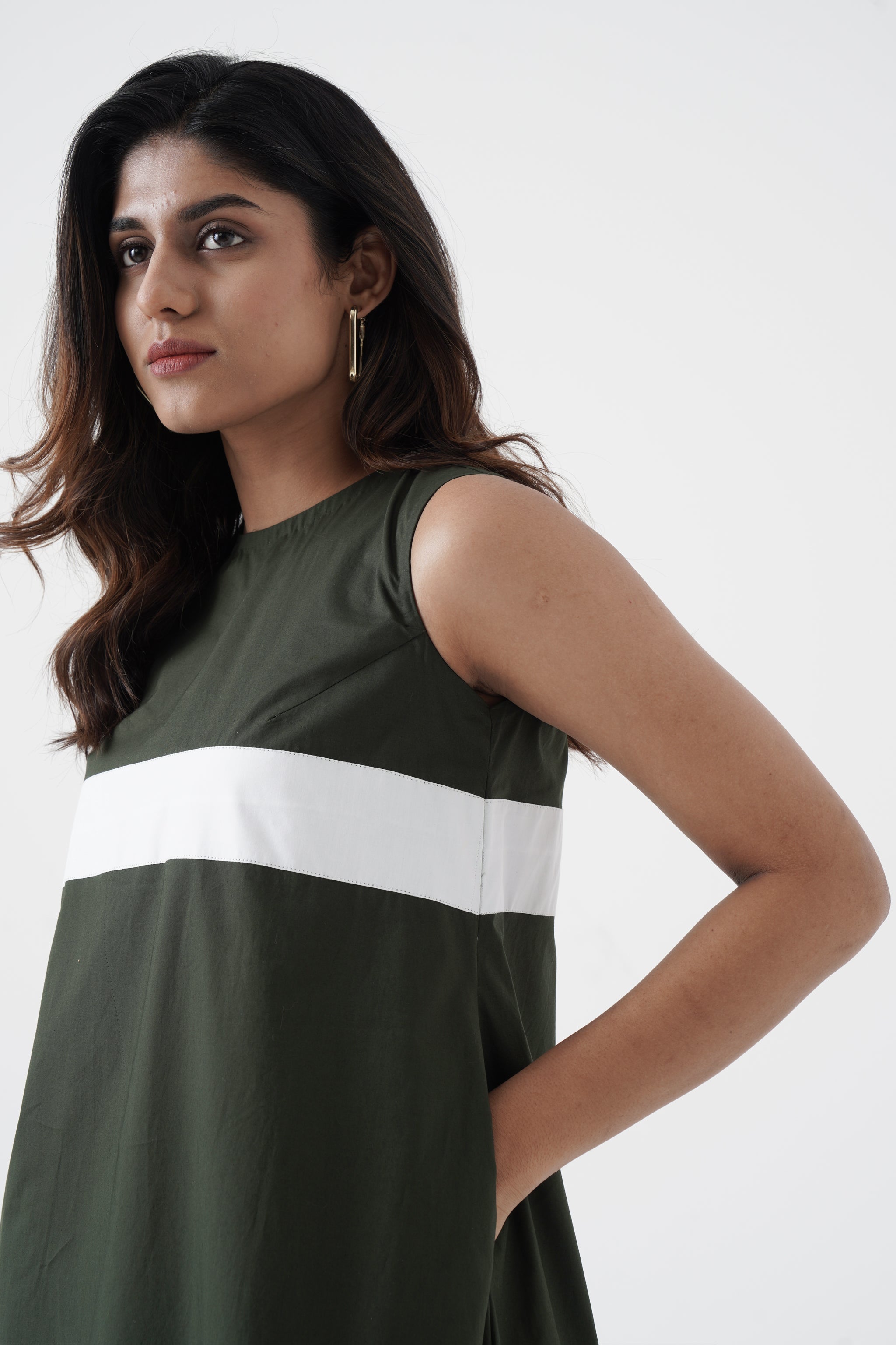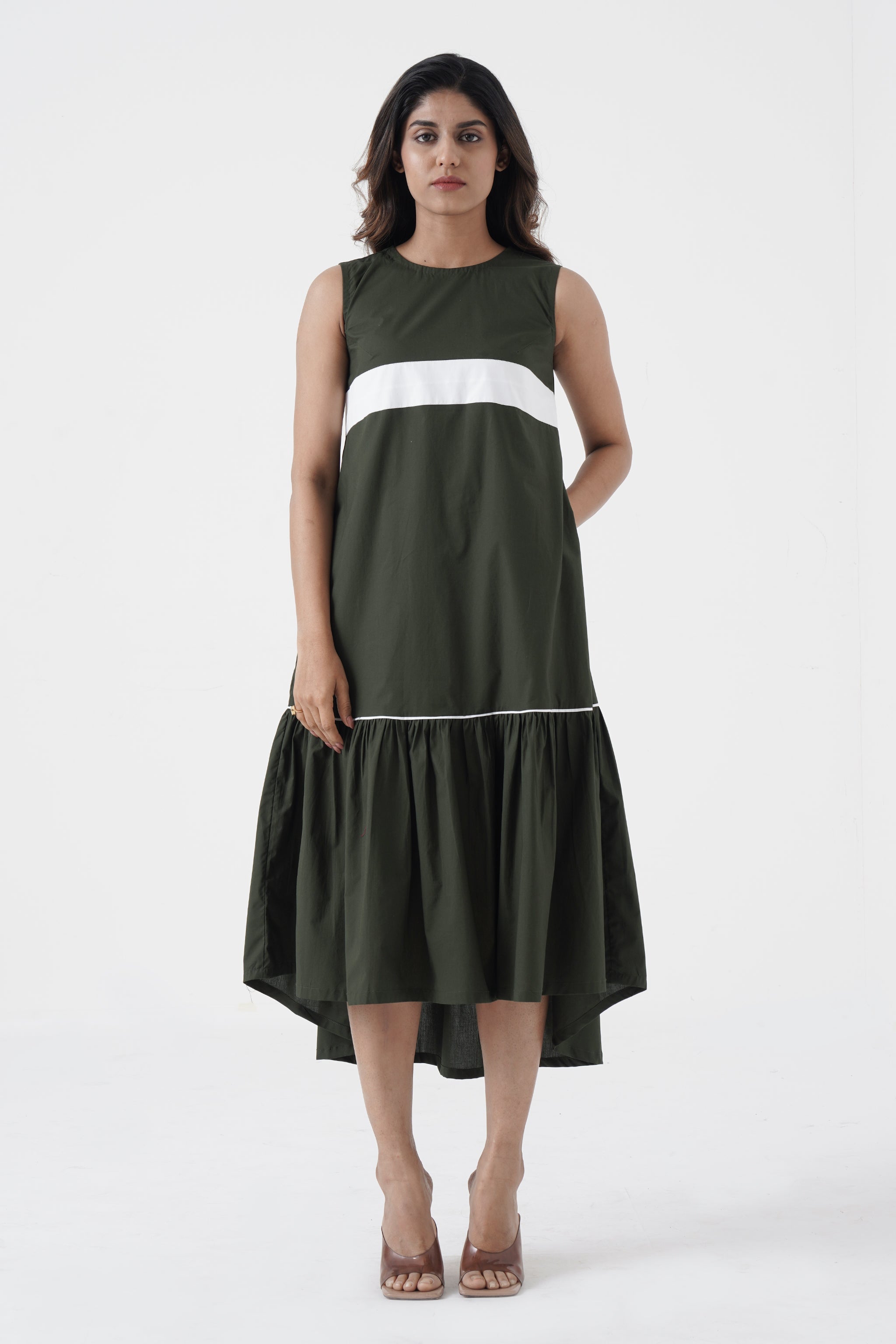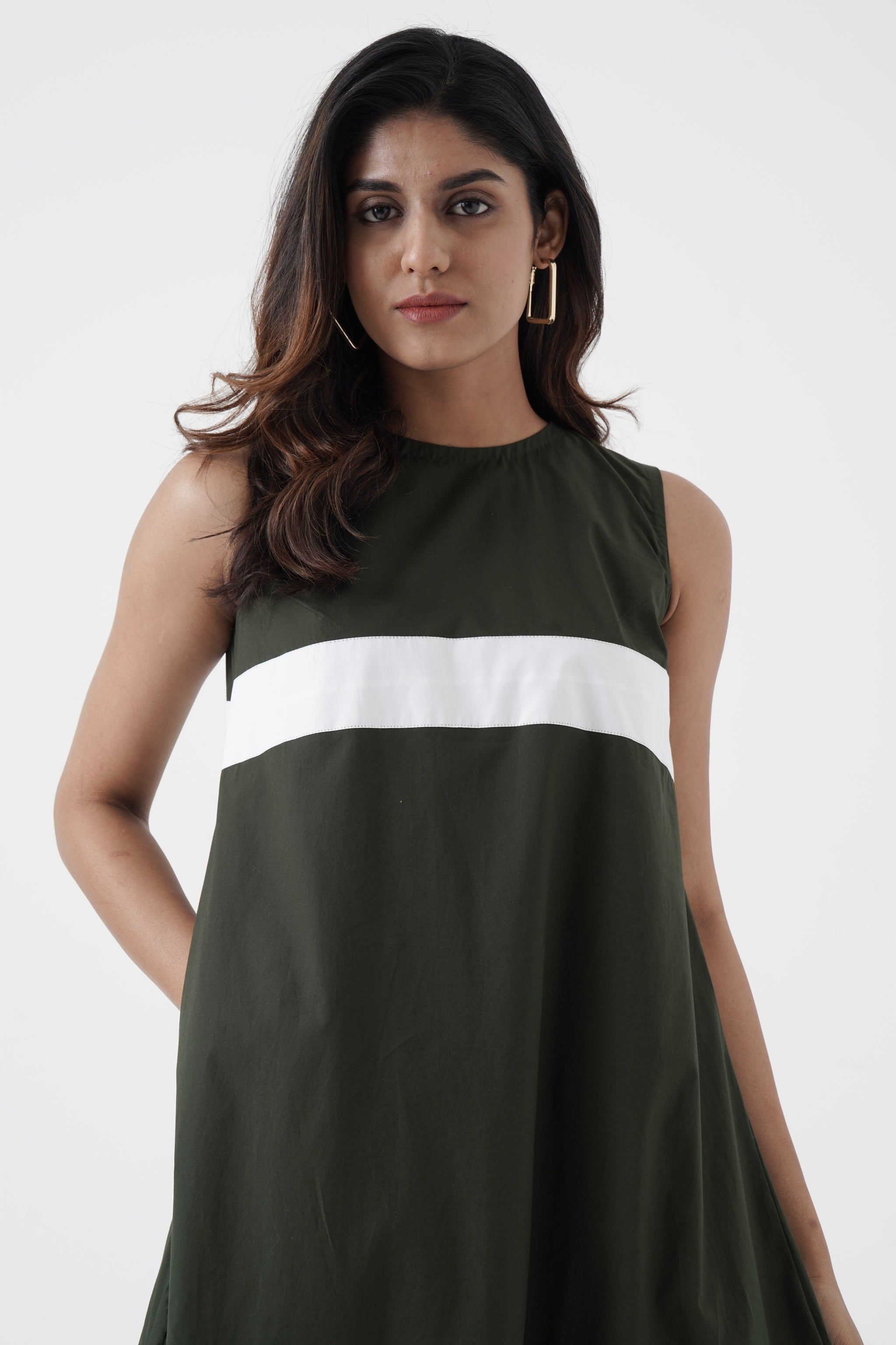 فستان أخضر بشريط أبيض على الصدر من يوريثميك