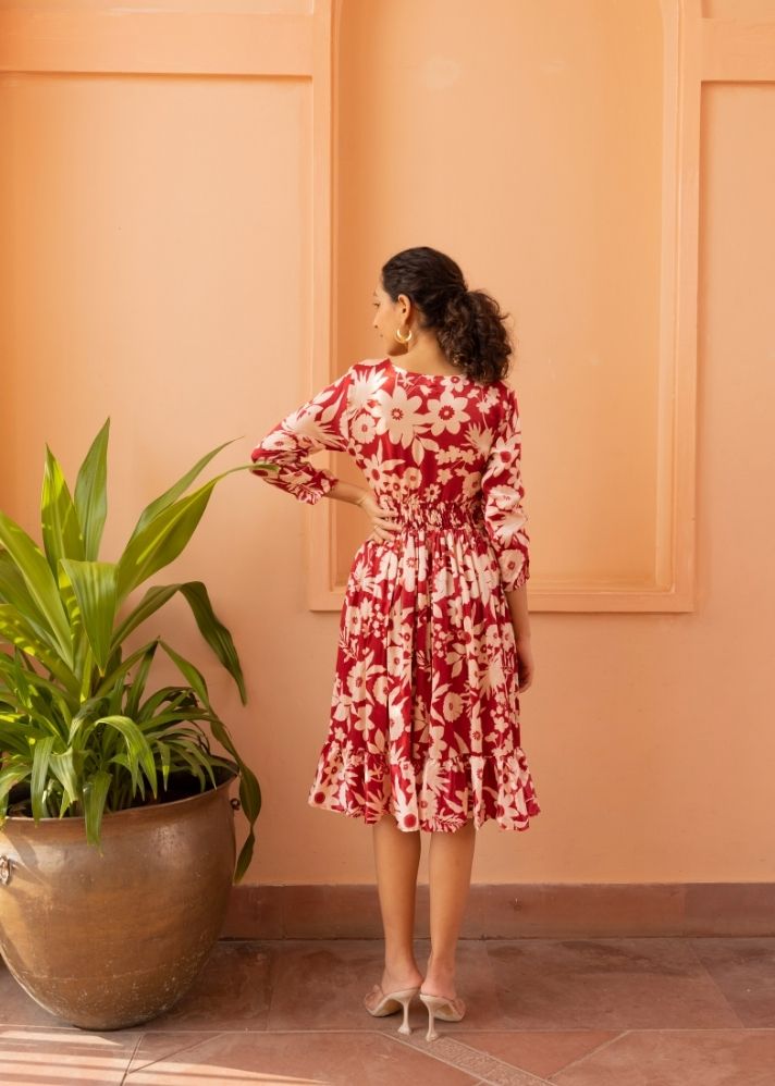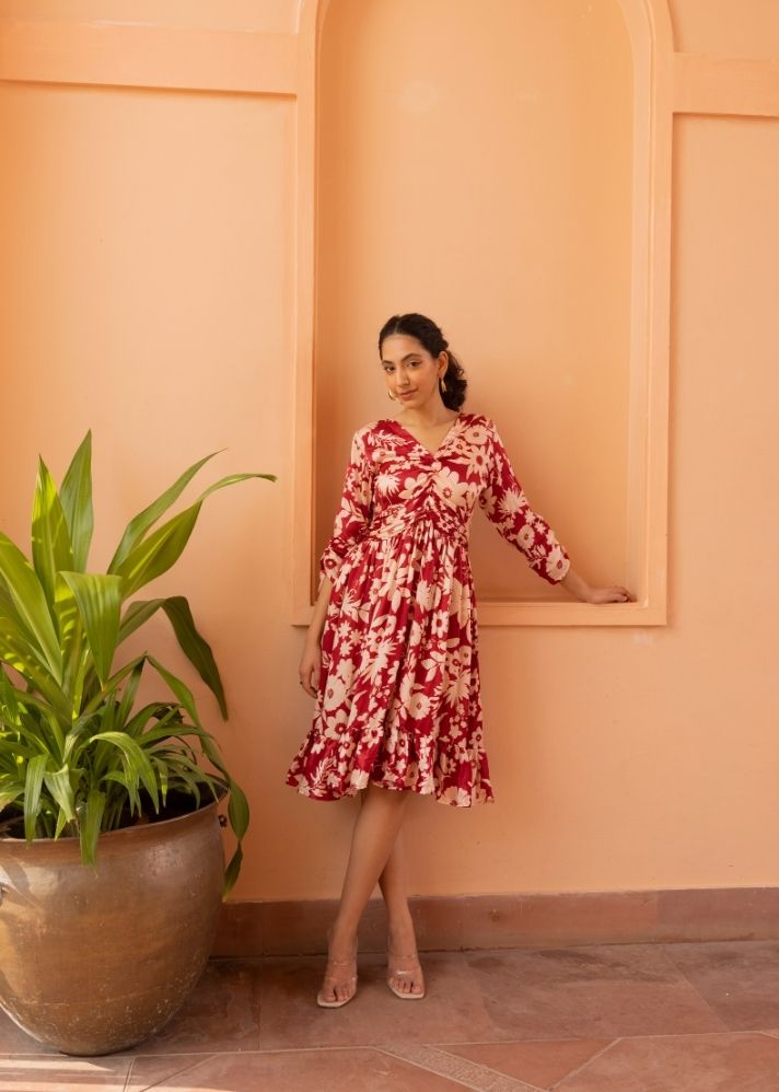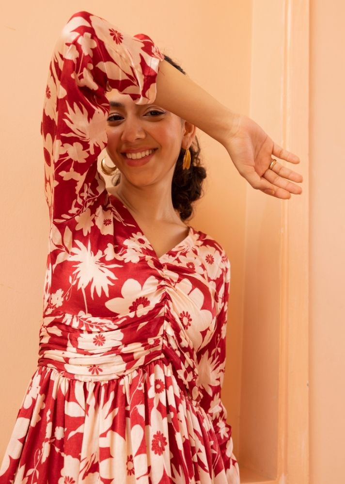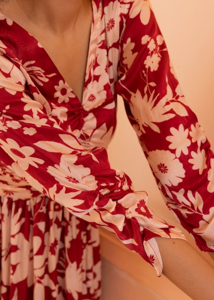 "فستان عنبري مصنوع من حرير OASIS RED BEMBERG يتميز بفتحة عنق جذابة على شكل حرف V، وحزام خصر مقلوب مع ظهر مرن قابل للتمدد لملاءمة مريحة، ويوفر خيارًا أنيقًا ومتعدد الاستخدامات لمختلف المناسبات. تم تصنيع هذا المنتج بواسطة ارتيسان سوميت"