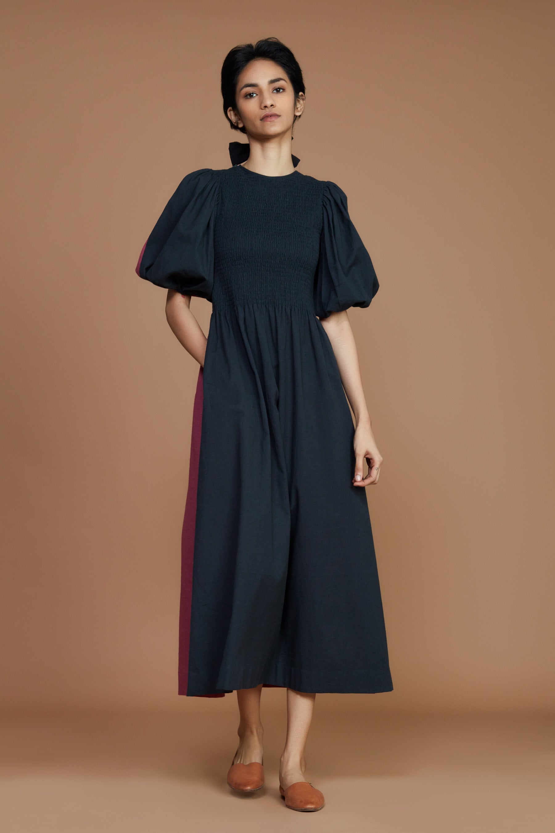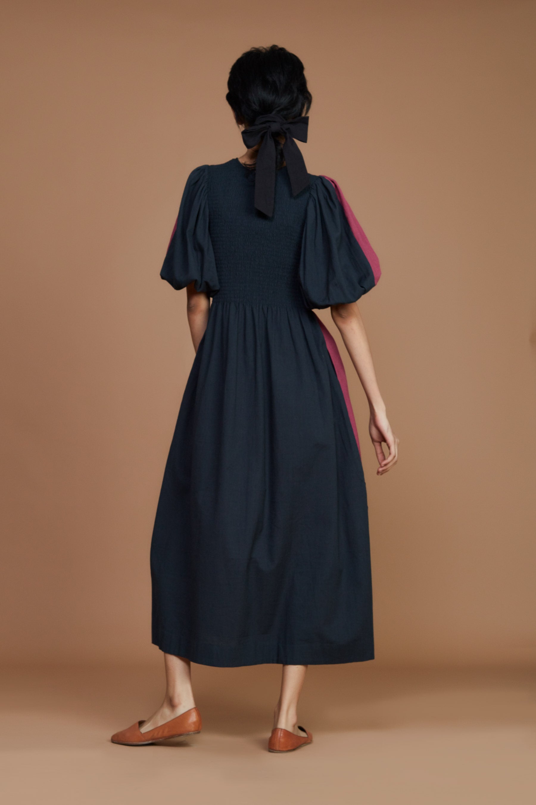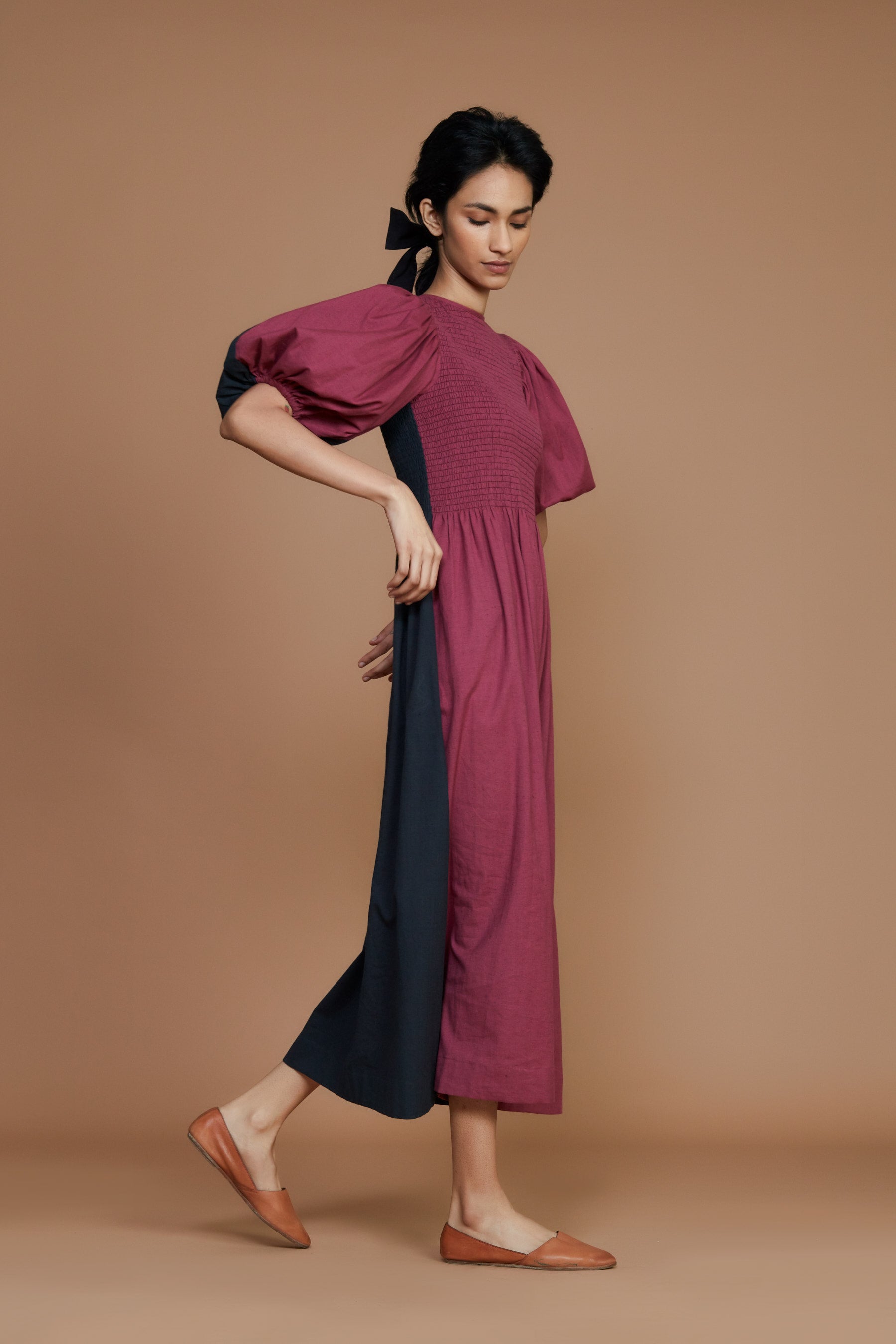 فستان بأكمام واسعة قابل للقلب بلون فحمي وموف