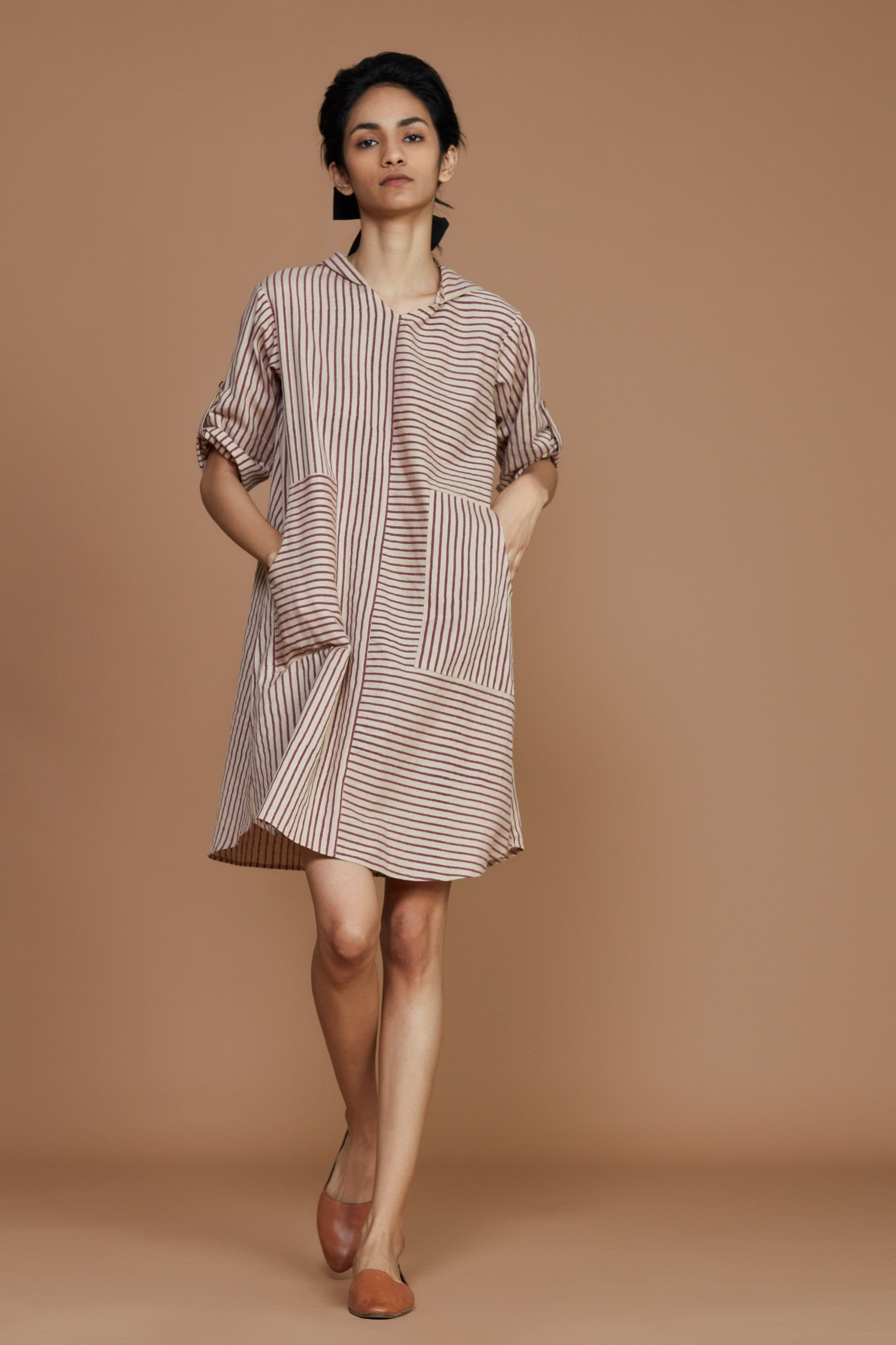 فستان بقلنسوة مخطط بلون عاجي وموف