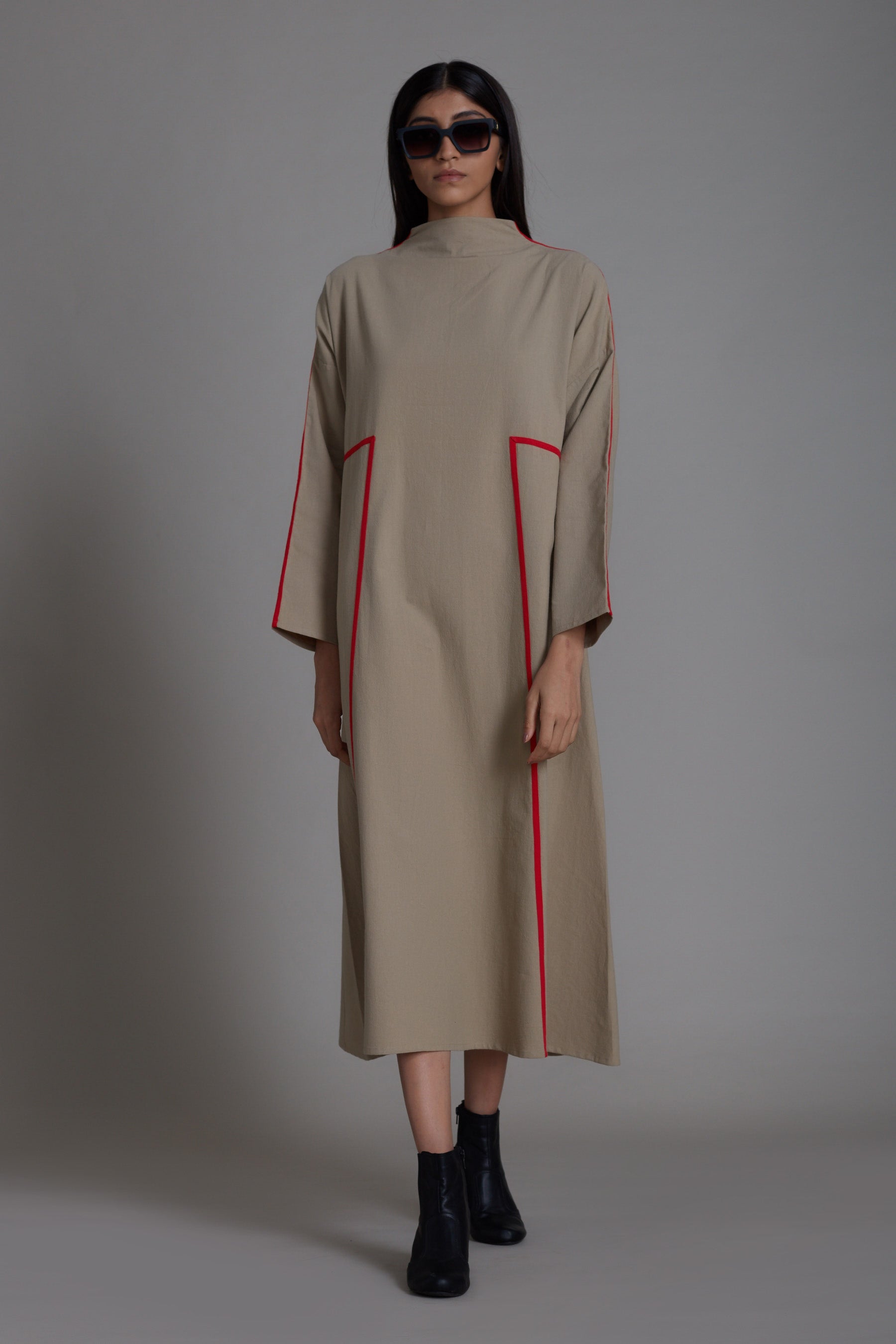 فستان طويل بخطوط أسطوانية - بيج
