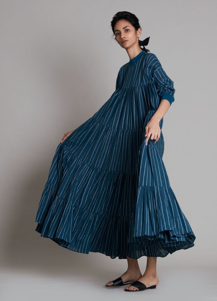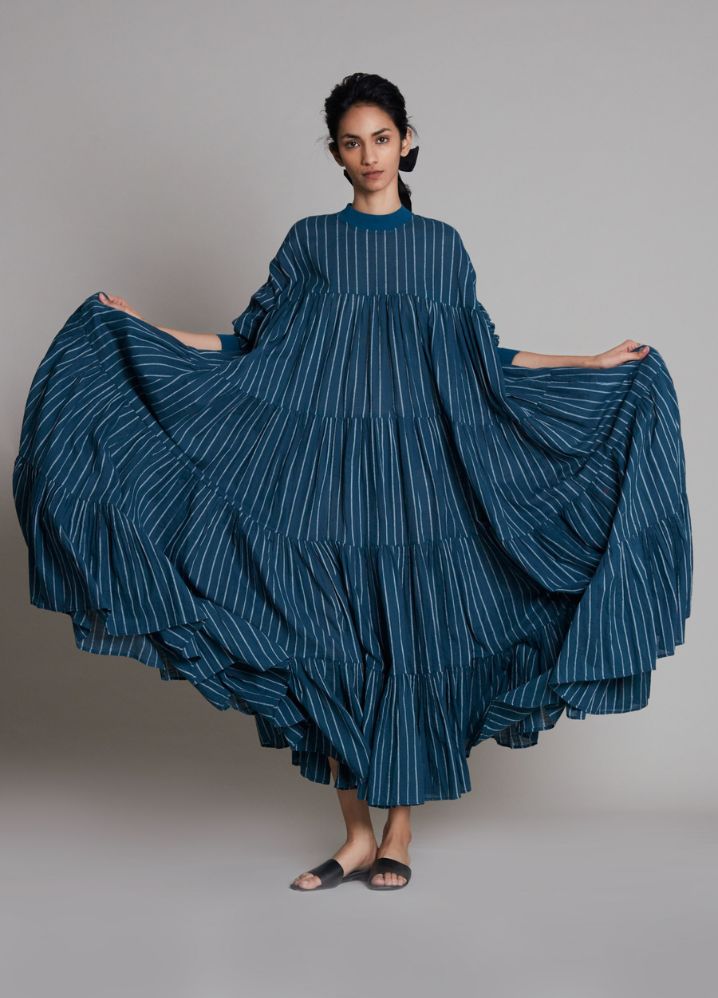 فستان فينا مضلع بلون تيل أزرق