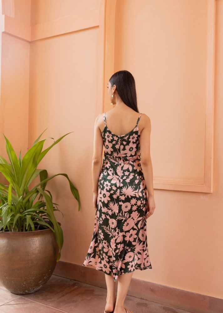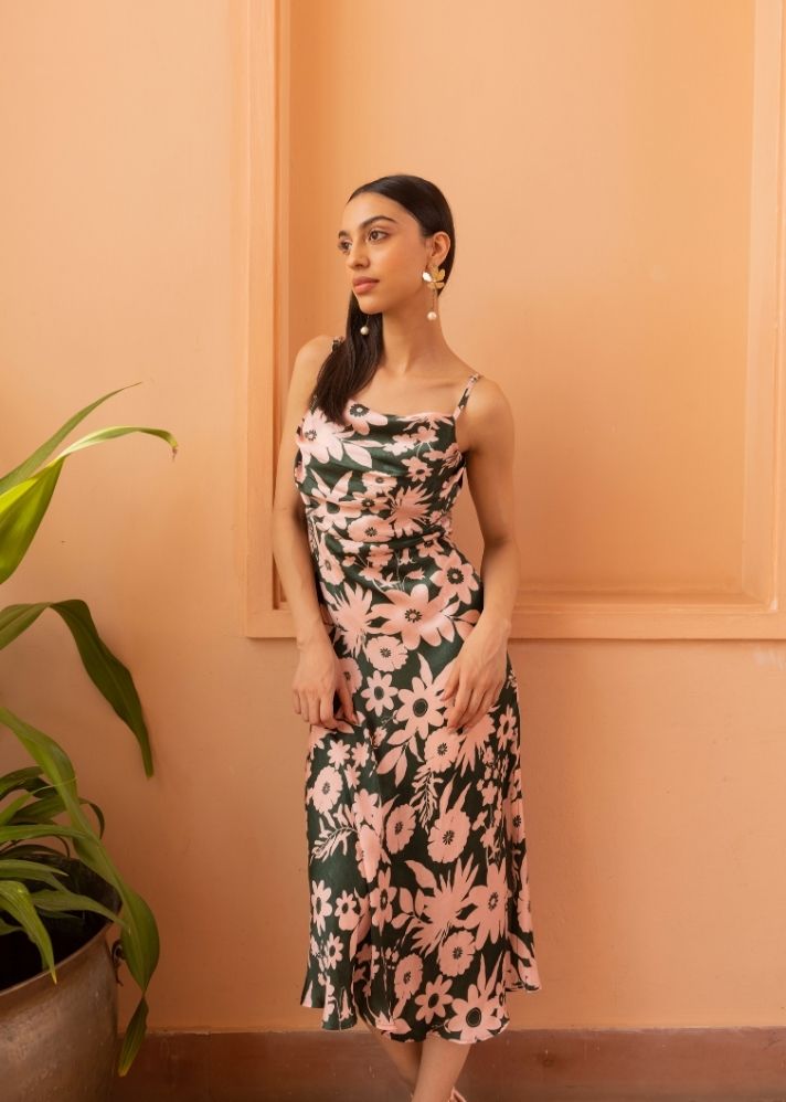 "انظر إلى فستاننا الطويل المزخرف بقص متحيز من OASIS GREEN BEMBERG SILK، مزين برقبة طربوش رشيقة. يضفي القطع المائل أناقة انسيابية على الصورة الظلية، بينما تضيف رقبة القلنسوة لمسة من السحر الحسي. الصورة الظلية تلتقط جوهر التطور المعاصر والحركة رشيقة. تم تصنيع هذا المنتج بواسطة ارتيسان مونو"