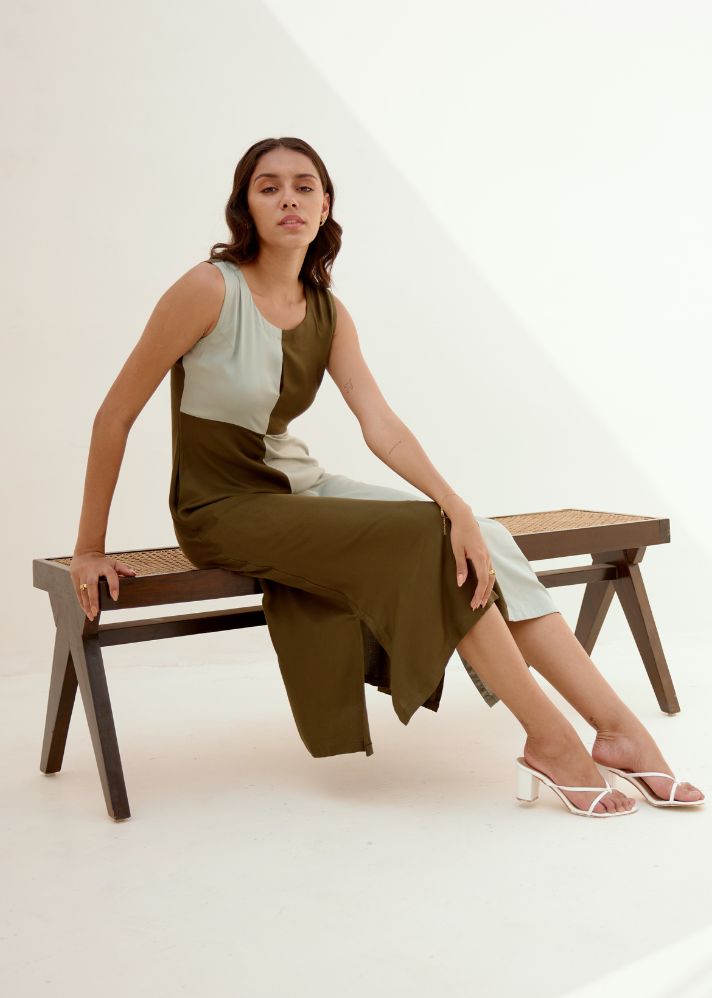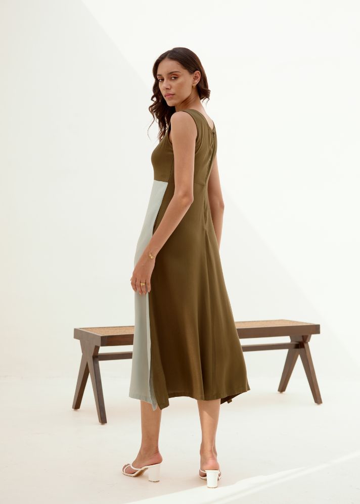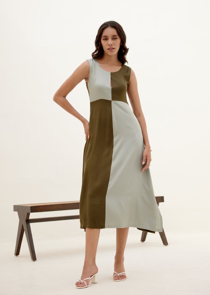 كلوفر - فستان بأربع قطع بألوان متقابلة متباينة - أخضر