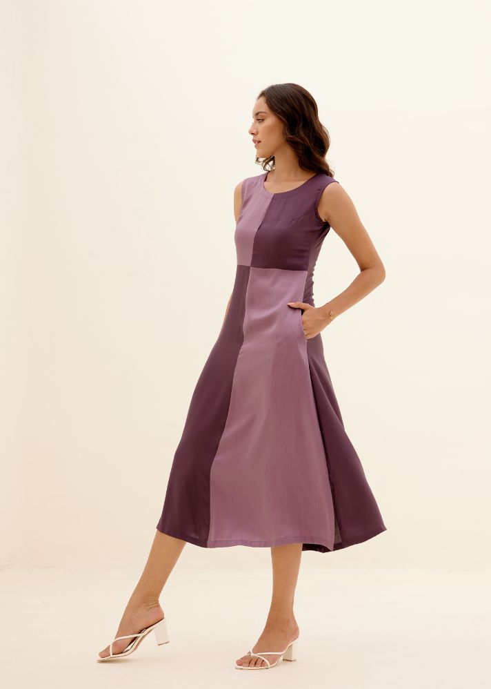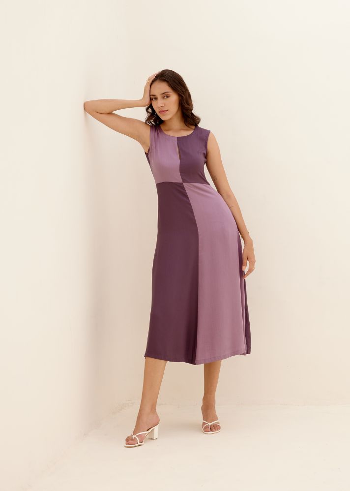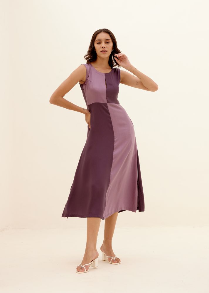 كلوفر - فستان بأربع قطع بألوان متقابلة متباينة - لافندر