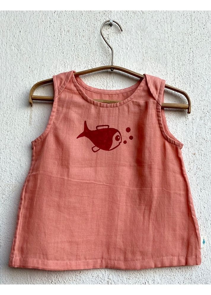 قطعة فوقية صيفية باللون الخوخي وبنطال باللون الأحمر من كوي من القطن العضوي ملائم للجنسين