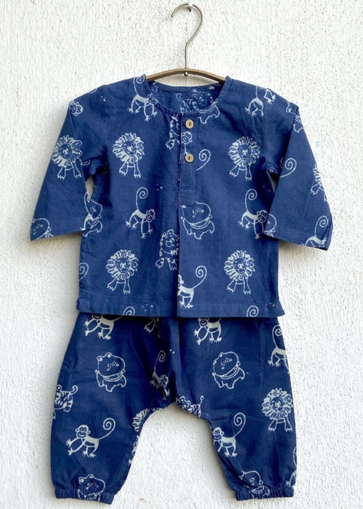 مجموعة أورجانيك زو ملائمة للجنسين - قرطق برسمة الحيوانات وباللون الأبيض وبنطال برسمة الحيوانات