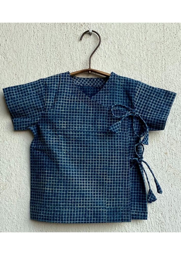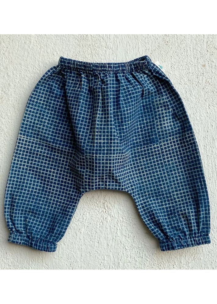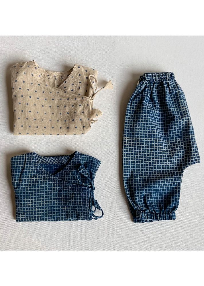 مجموعة أورجانيك زو ملائمة للجنسين - قطعة فوقية بأكمام قصيرة وبنطال رايدانا برسمة المربعات وباللون النيلي