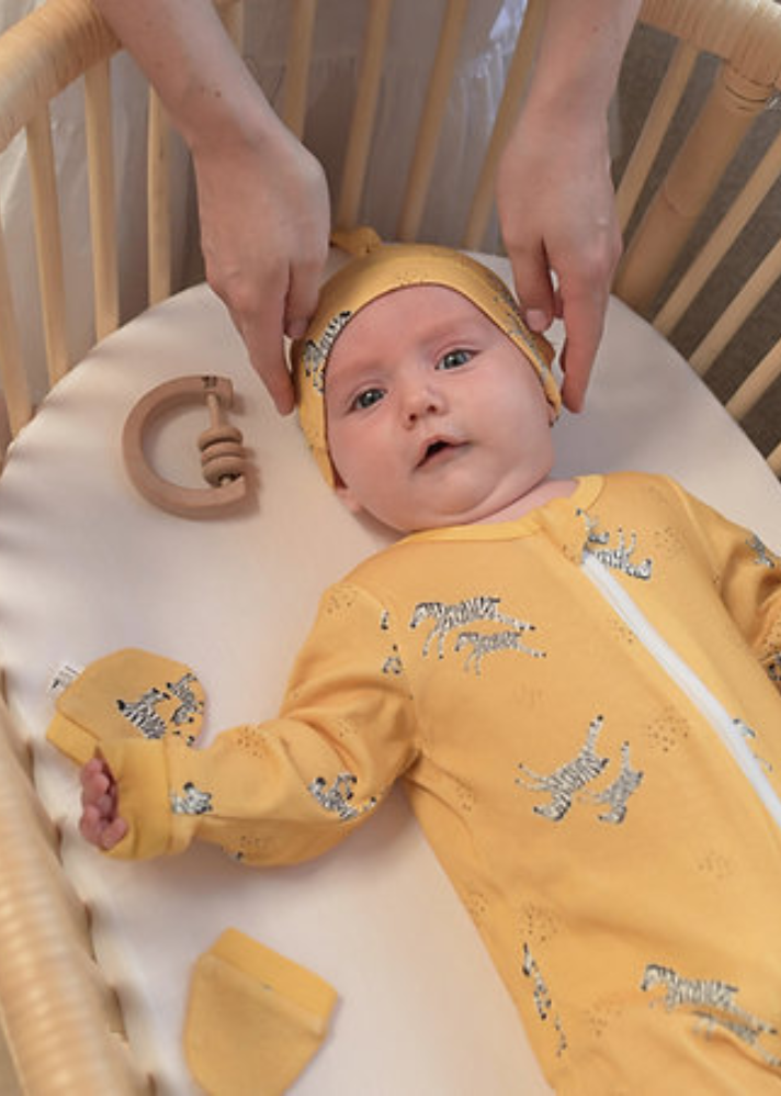 ستساعد هذه العبوة الناعمة والمريحة المكونة من قفازين عضويين على منع مولودك الجديد من خدش نفسه. يضمن المطاط المغلف الناعم عند المعصم عدم سقوطه أثناء نوم الطفل