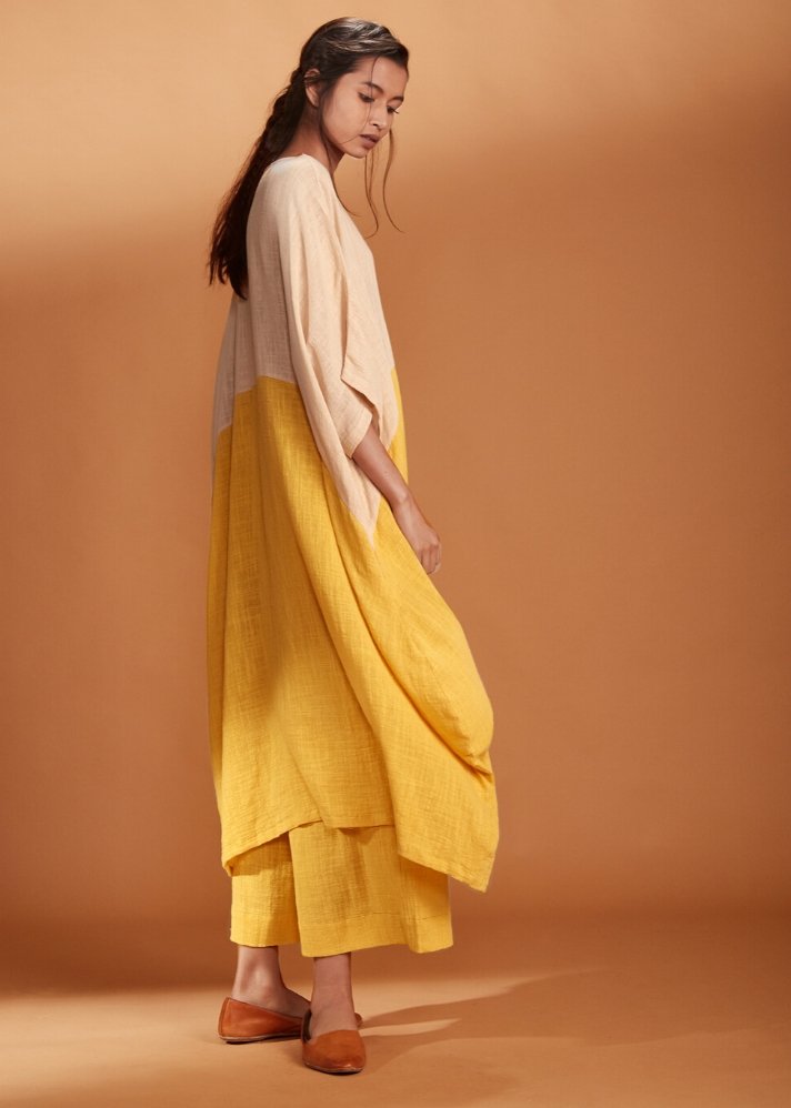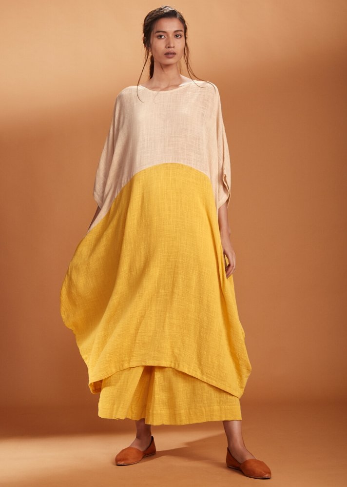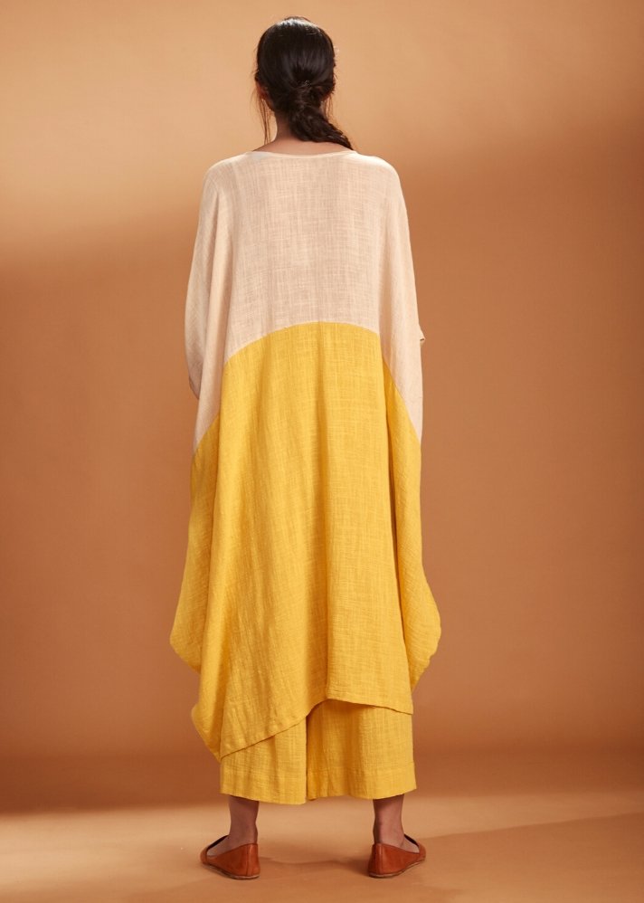 طقم تونيك مزدوج-أصفر-وعاجي