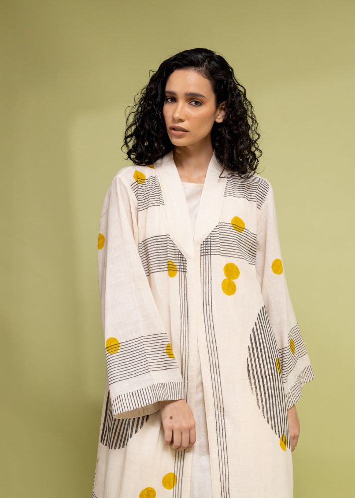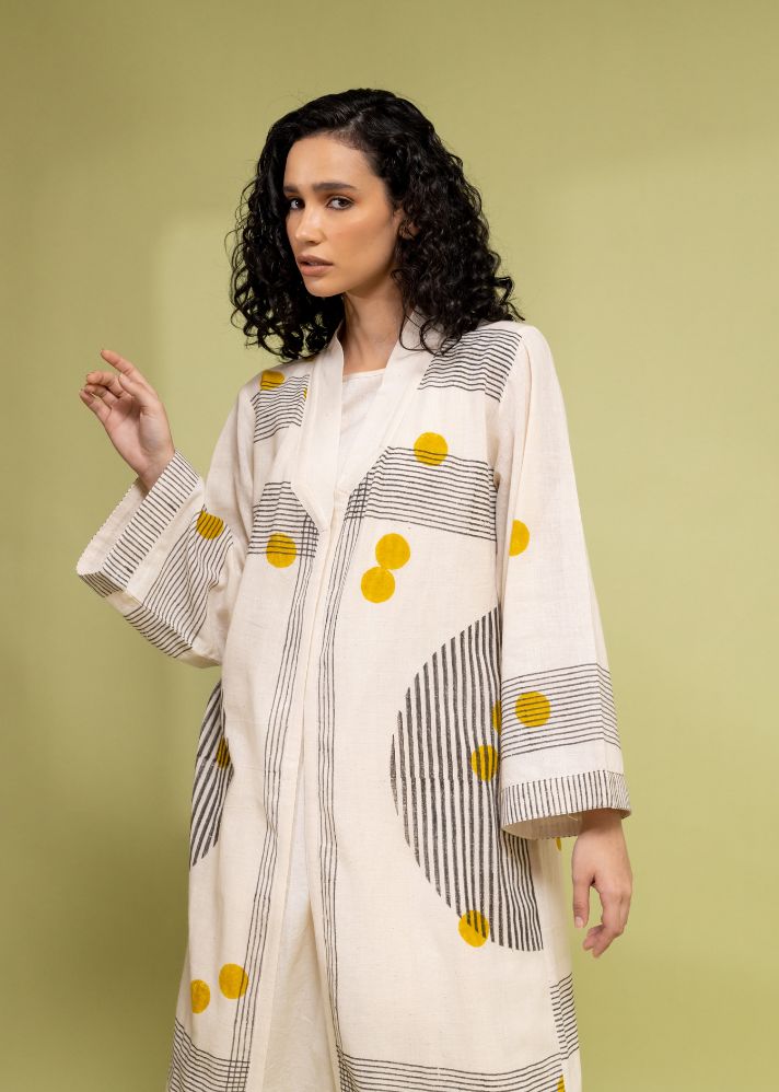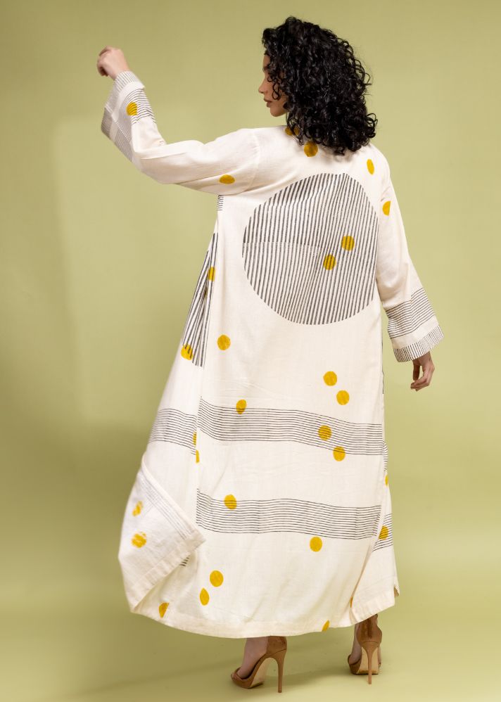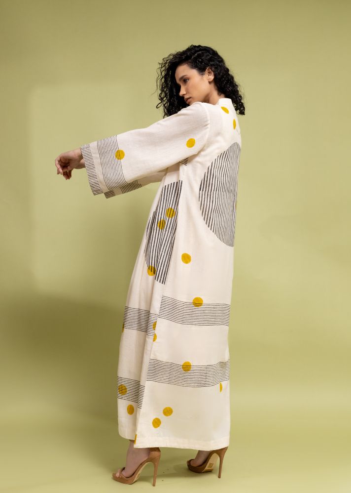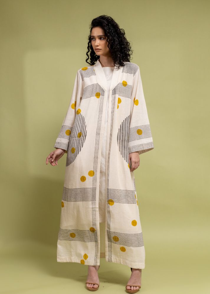 عباية بنقشات دائرية متماثلة - أوف وايت
