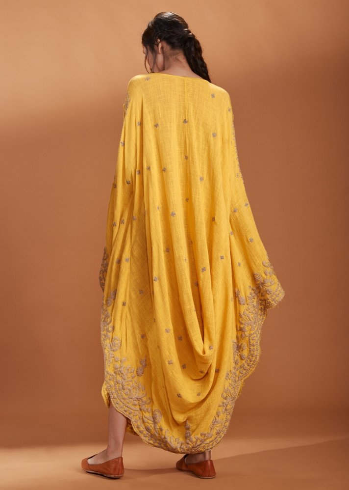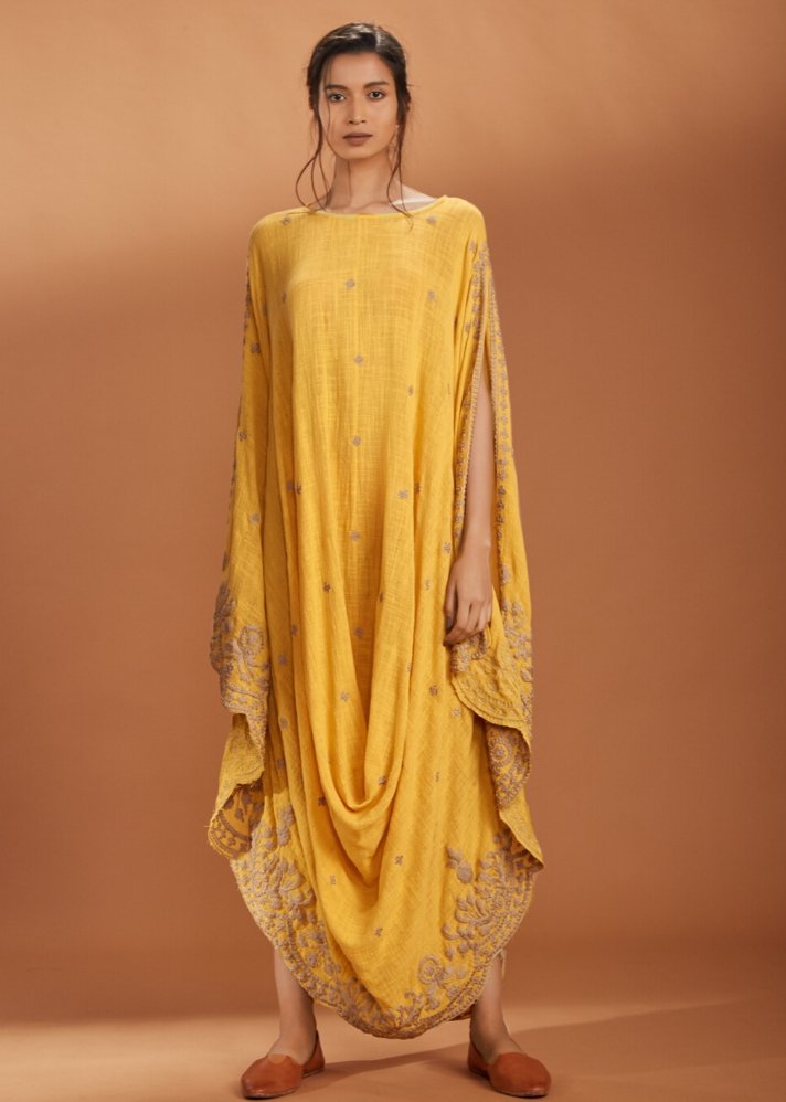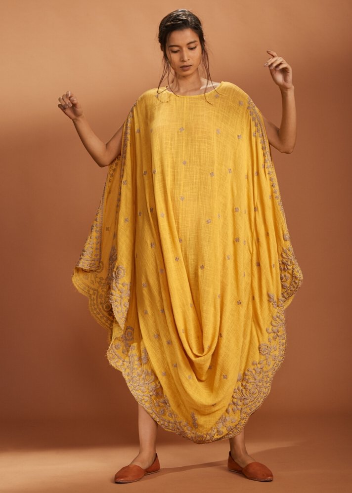 فستان طويل جميل على شكل قلنسوة وأكمام طويلة وقصة سهلة. ارتديه بالحزام وأكملي المظهر.