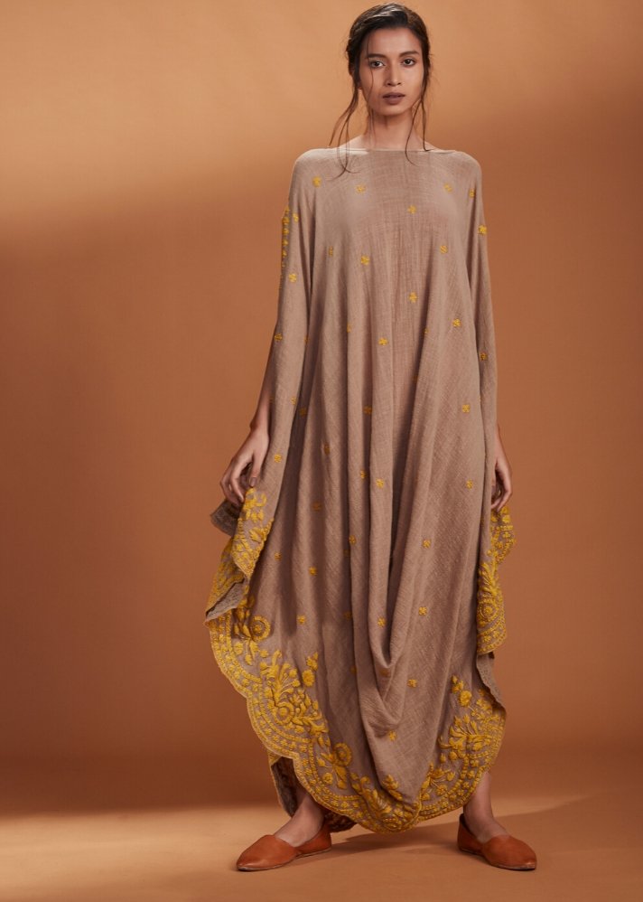 فستان-مطرز-قفطان-نمط-بني