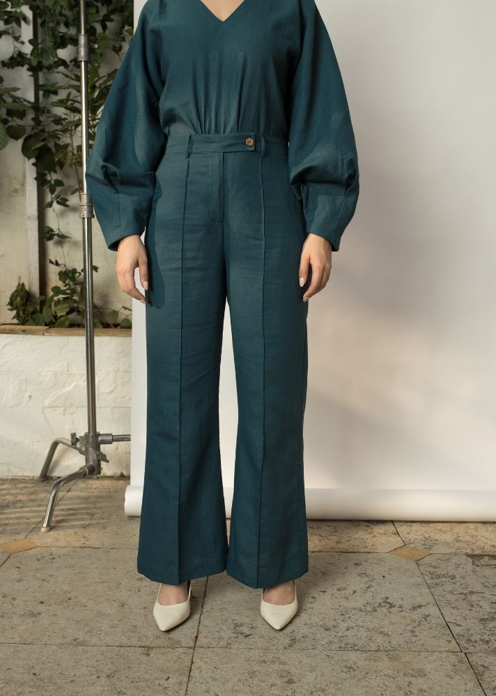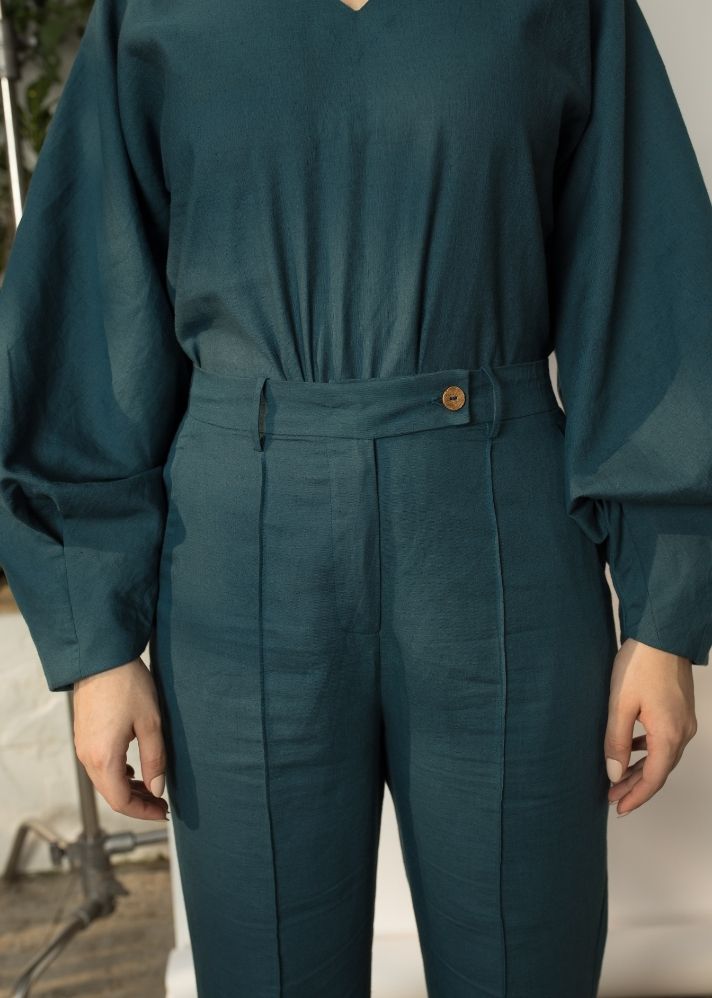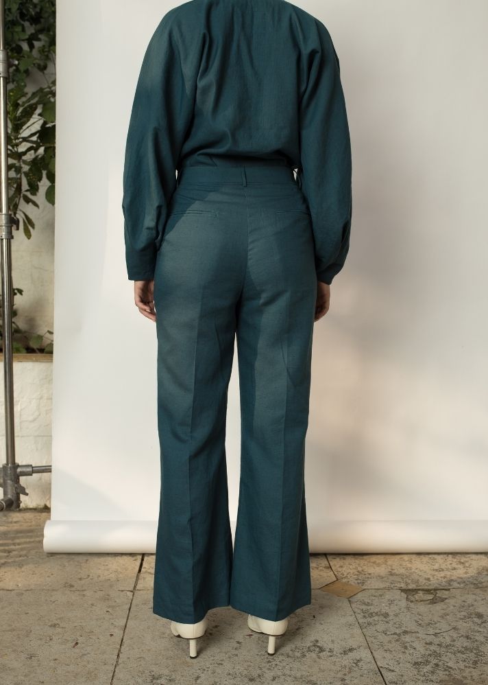 هذه السراويل مستوحاة من السبعينيات. مصنوع من قطن القنب، ومصمم بقصة ضيقة عند الفخذين، كما أنه مزود بأرجل قصيرة واسعة. تفاصيل التصميم تتضمن حزام الخصر الممتد، وجيوب خلفية بحاشية، ودرزات أنيقة مدسوسة. ارتديه مع سترة مزدوجة الصدر للحصول على بدلة رائعة.