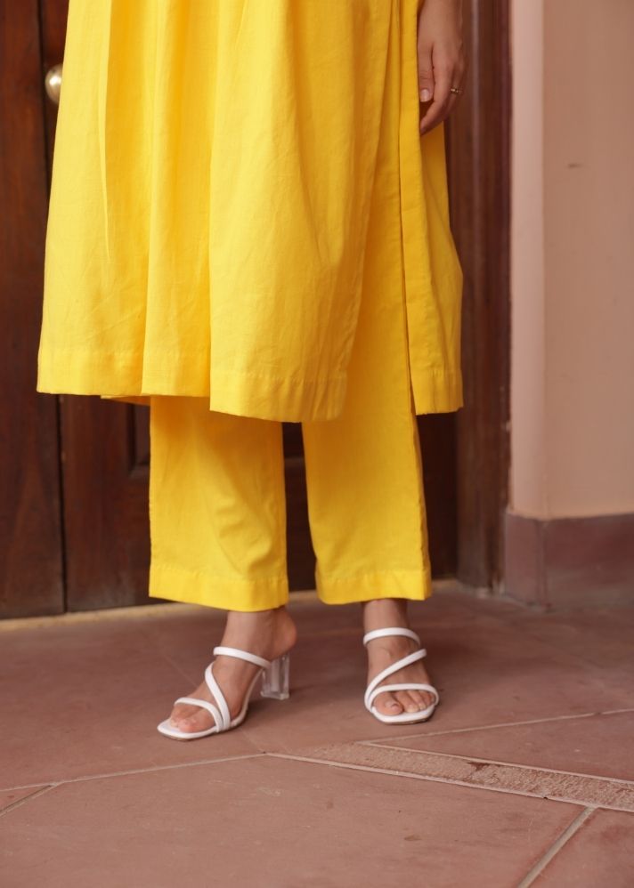 "احصل على الراحة والاستعداد للاستمتاع بهذا البنطلون القطني العضوي ذو اللون الأصفر القزحي، الذي يشع بالحيوية والذوق، ويضيف لمسة من الألوان إلى أي مجموعة. يتيح لك هذا البنطلون الضيق ذو الجيوب الجانبية حمل جميع ضرورياتك مع الحفاظ على أناقته. تم تصنيع هذا المنتج بواسطة ارتيسان راج"