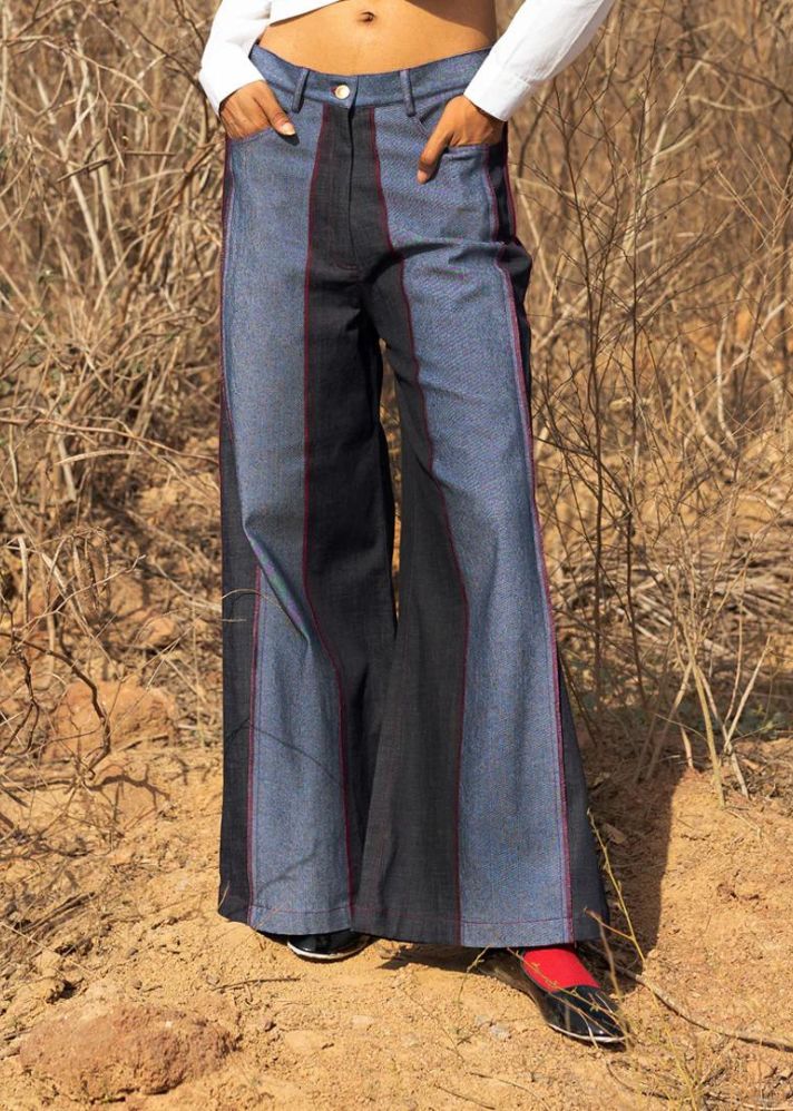 بنطلون جينز واسع مع خيط بارز وجيوب.