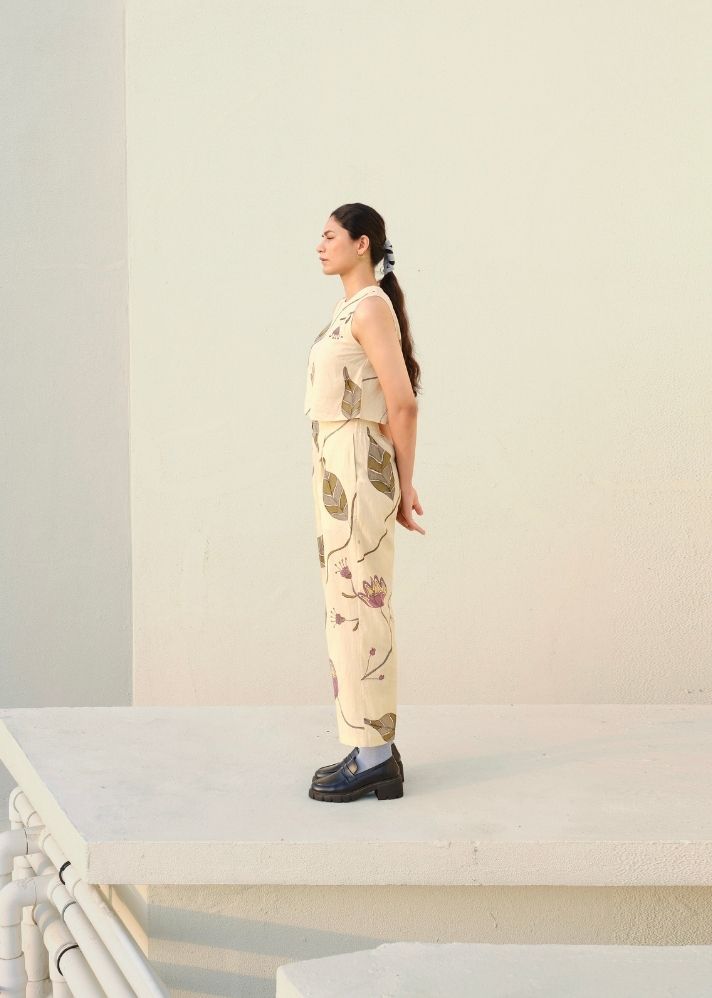 زوج من السراويل المستقيمة المرسومة يدويًا مع طيات وظهر مطاطي وجيوب جانبية وتفاصيل وهمية. قم بإقرانها مع أي من قمصاننا المرسومة يدويًا لترقيتها إلى تنسيق أنيق.