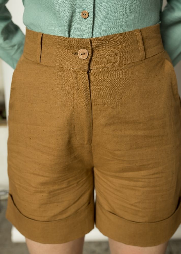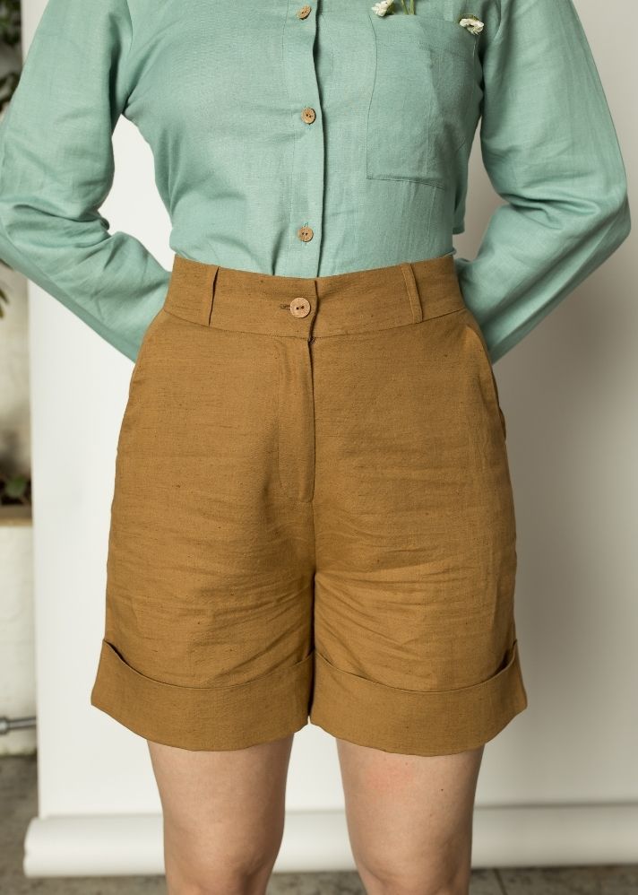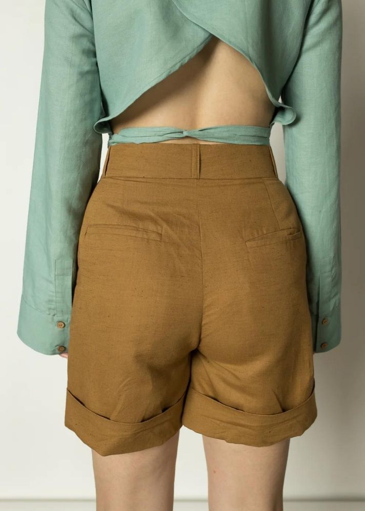 تم تصميم هذا الشورت ذو الخصر المتوسط بساق مستقيمة وأساور مطوية وجيوب جانبية متقاطعة. تم تشطيب الجزء الخلفي بجيوب بحاشية واحدة. يمكنك الاستفادة من الاتجاه المحدد المطابق من خلال ارتدائها مع القميص المتراكب.