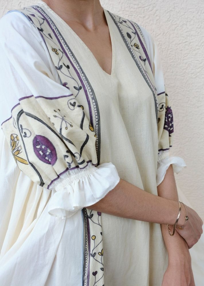 تعليمات العناية: نحن نصنع ملابسنا بعناية فائقة ونحثك على مواصلة العناية بها. الأقمشة المستخدمة في ملابسنا حساسة. نوصي بالتنظيف الجاف لجميع هذه المنتجات للحفاظ على طول عمر هذه المنتجات المصنوعة يدويًا.تخزين الملابس في مكان نظيف وجاف.