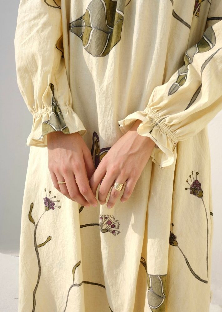 تعليمات العناية: نحن نصنع ملابسنا بعناية فائقة ونحثك على مواصلة العناية بها. الأقمشة المستخدمة في ملابسنا حساسة. نوصي بالتنظيف الجاف لجميع هذه المنتجات للحفاظ على طول عمر هذه المنتجات المصنوعة يدويًا.تخزين الملابس في مكان نظيف وجاف.