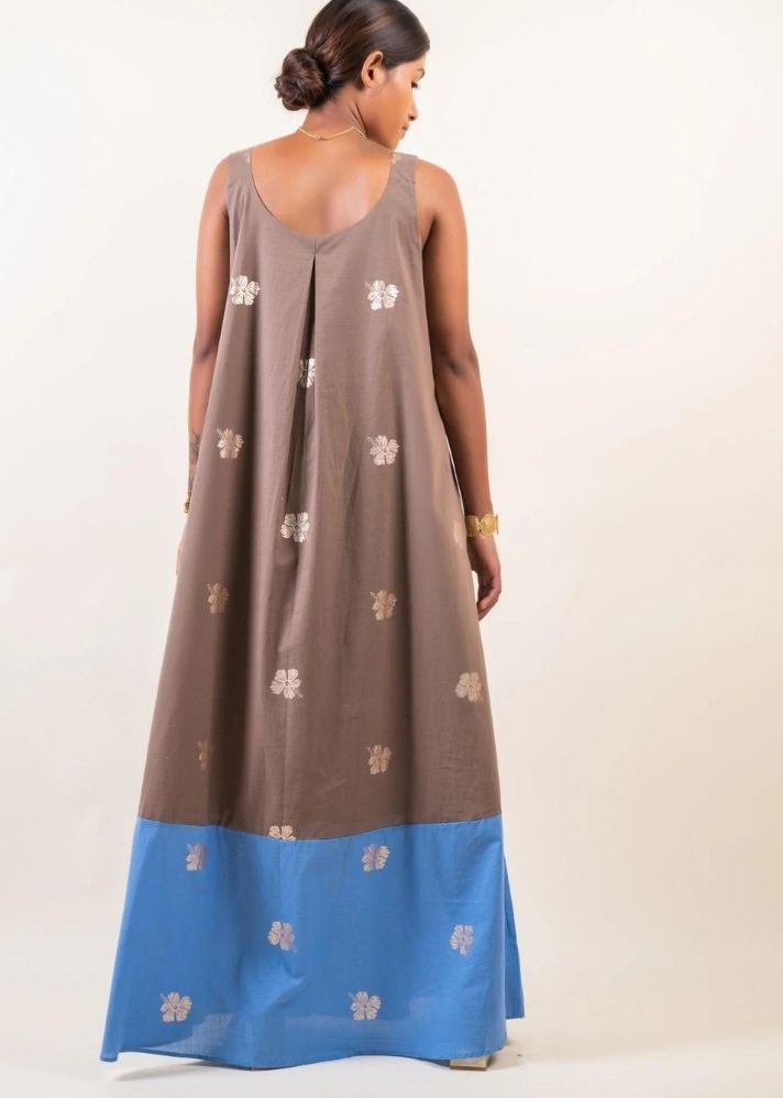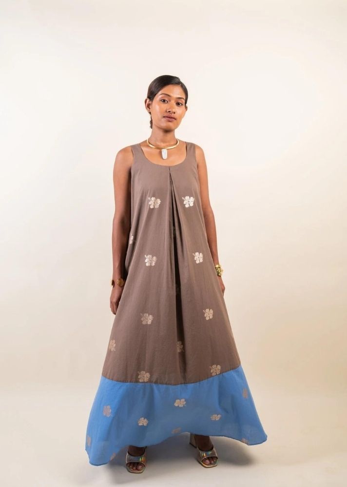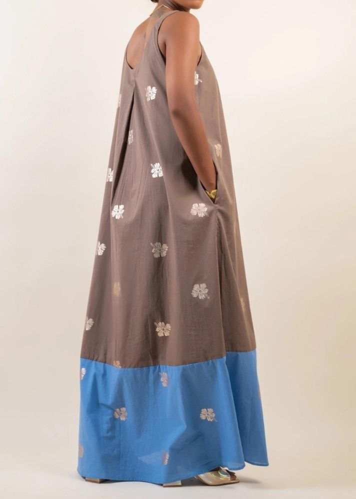 تزيد كتلة الألوان من جمال فستان Raya Marie. هذا الفستان مصنوع من القطن الناعم مع طباعة فويل، ويتميز برقبة على شكل حرف U وطيات مقلوبة في الأمام والخلف مما يخلق صورة ظلية واسعة.