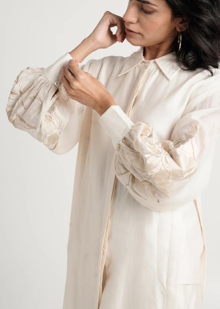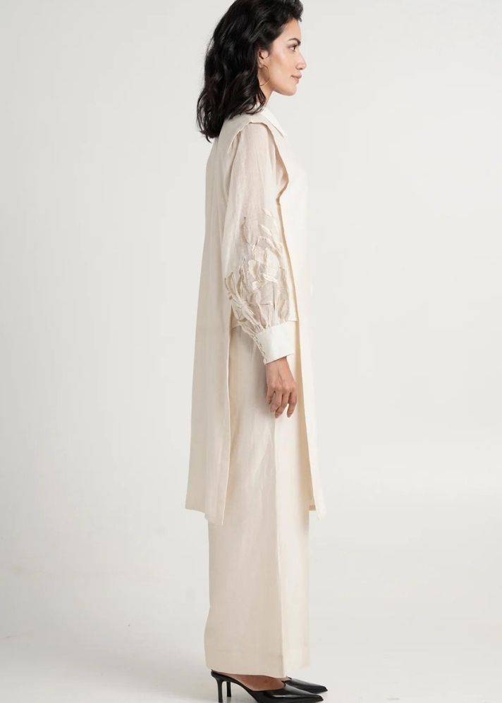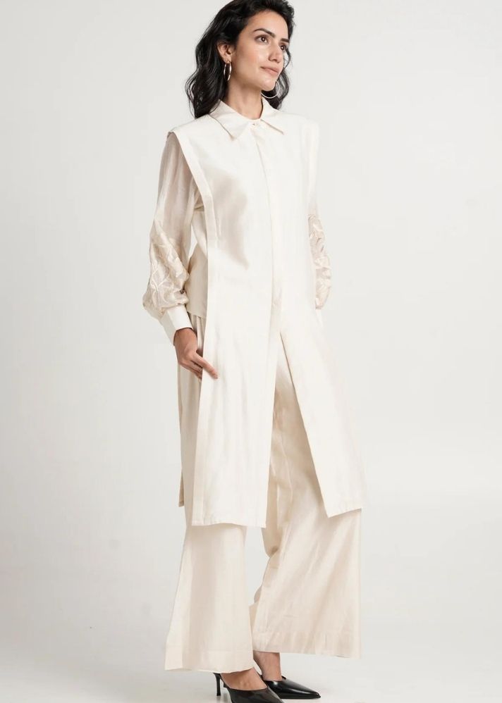 نقدم لكم مجموعة Buckler Ivory Hostess Kurta Set: المجموعة الرسمية المثالية لكل اجتماع مهم. تم تصميم هذه المجموعة بشكل فني ومصنوعة بشكل رائع من أجود المواد، وستمنحك أسلوبًا راقيًا وخالدًا. ارفع خزانة عملك مع مجموعة الكورتا الأنيقة هذه.