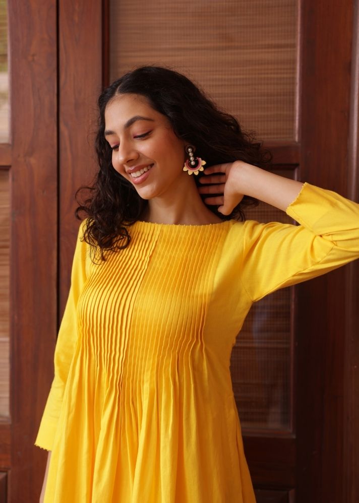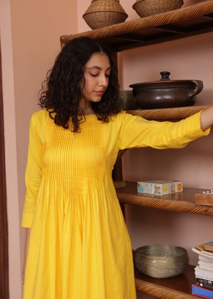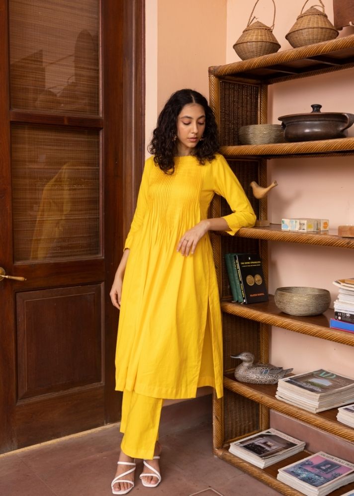 "مجموعة تشع بالجمال. مجموعة كورتا سانتوريني الخاصة بنا المصنوعة من القطن العضوي الأصفر هي مزيج من كورتا فلامنغو مع بنطال قزحي الألوان الذي سيرفع من خزانة ملابسك الأصلية التي تتميز بأنها خالدة ومعاصرة بشكل لافت للنظر. هذا المنتج من صنع ارتيسان نعيم"