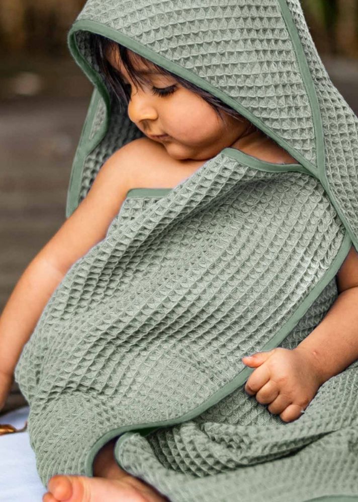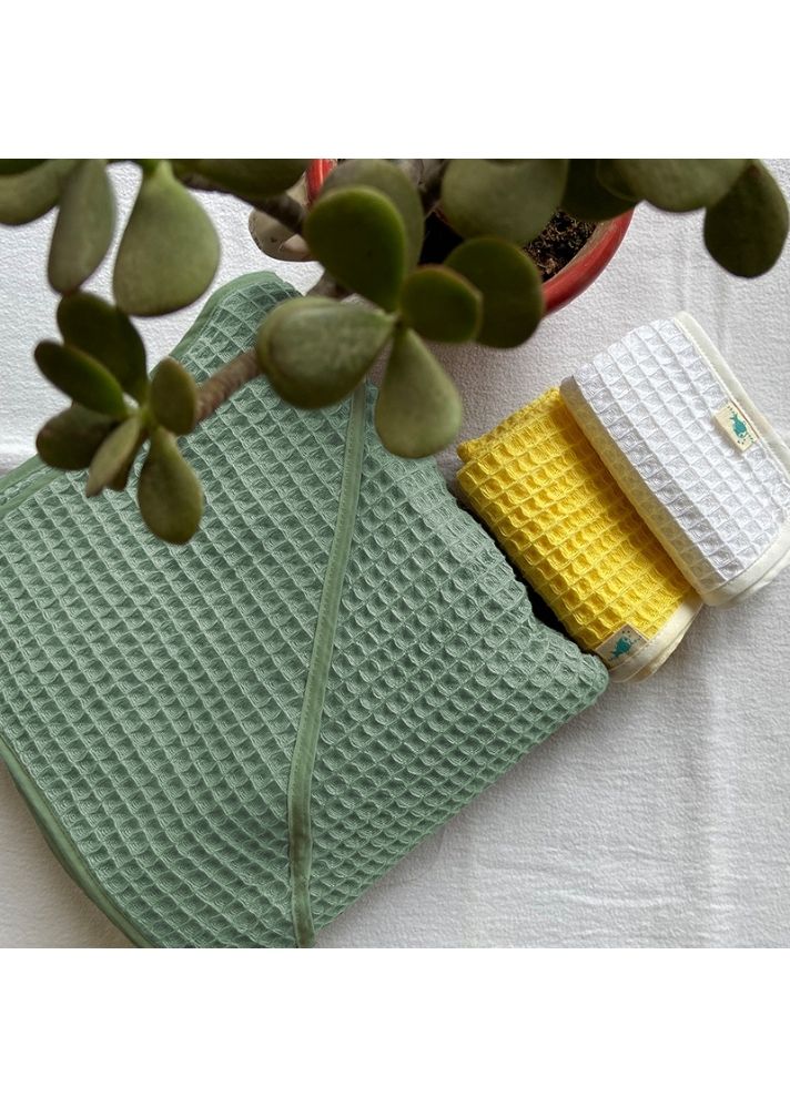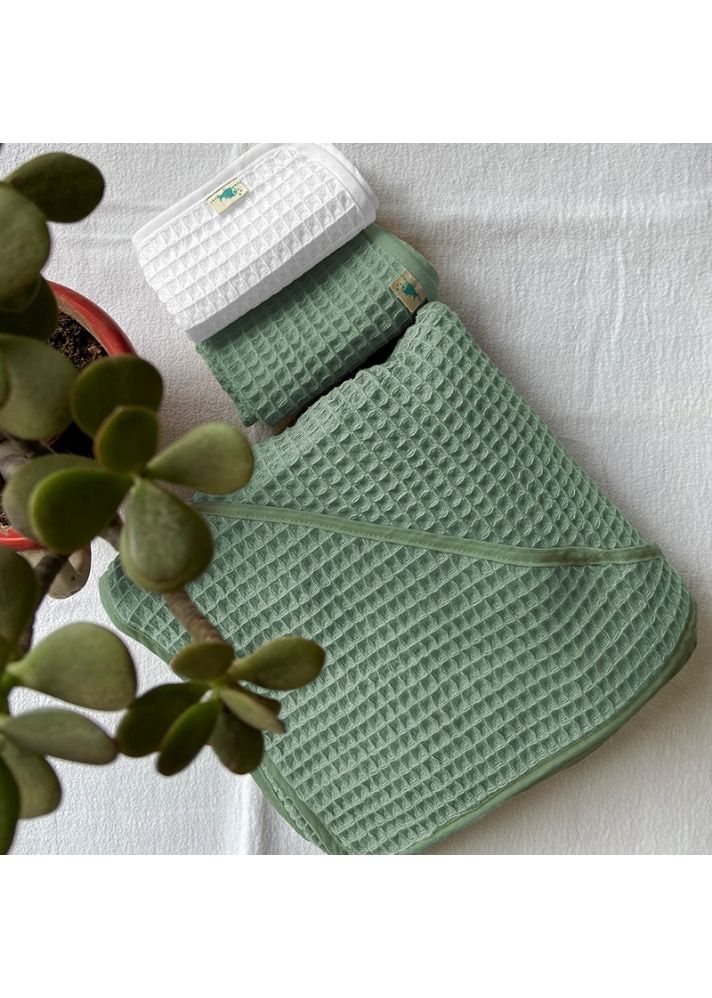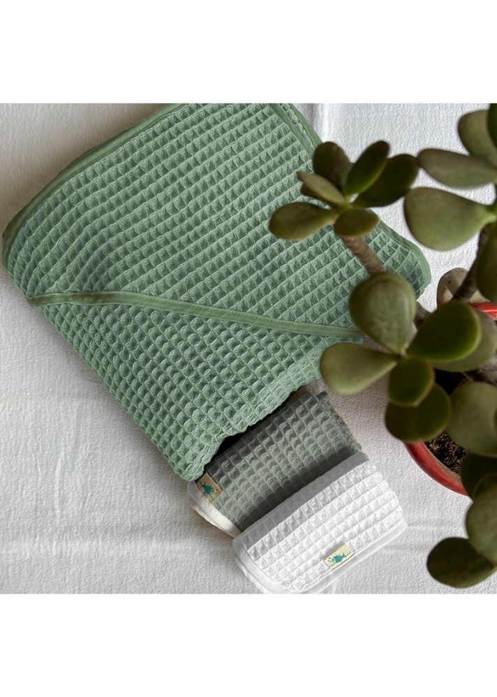 طقم منشفة بغطاء للرأس من القطن العضوي بشكل نسيج خلايا النحل - باللون الرمادي