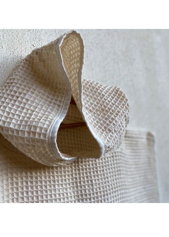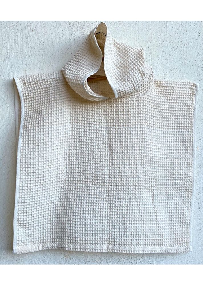 طقم منشفة بونشو بغطاء للرأس من القطن العضوي بشكل نسيج خلايا النحل - بلون طبيعي