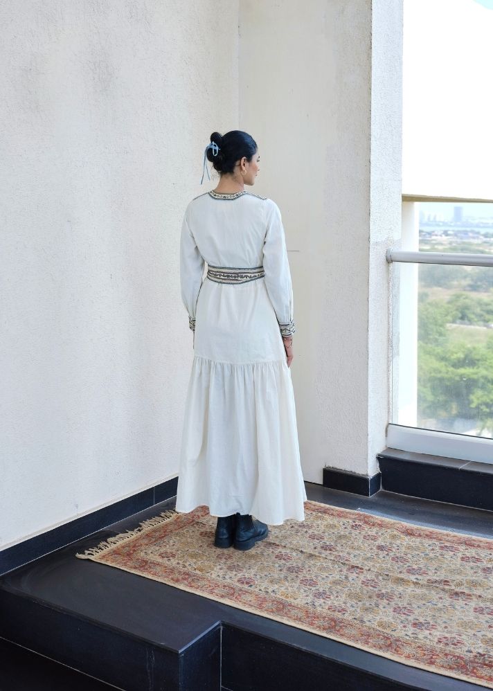 تعليمات العناية: نحن نصنع ملابسنا بعناية فائقة ونحثك على مواصلة العناية بها. الأقمشة المستخدمة في ملابسنا حساسة. نوصي بالتنظيف الجاف لجميع هذه المنتجات للحفاظ على طول عمر هذه المنتجات المصنوعة يدويًا.تخزين الملابس في مكان نظيف وجاف.