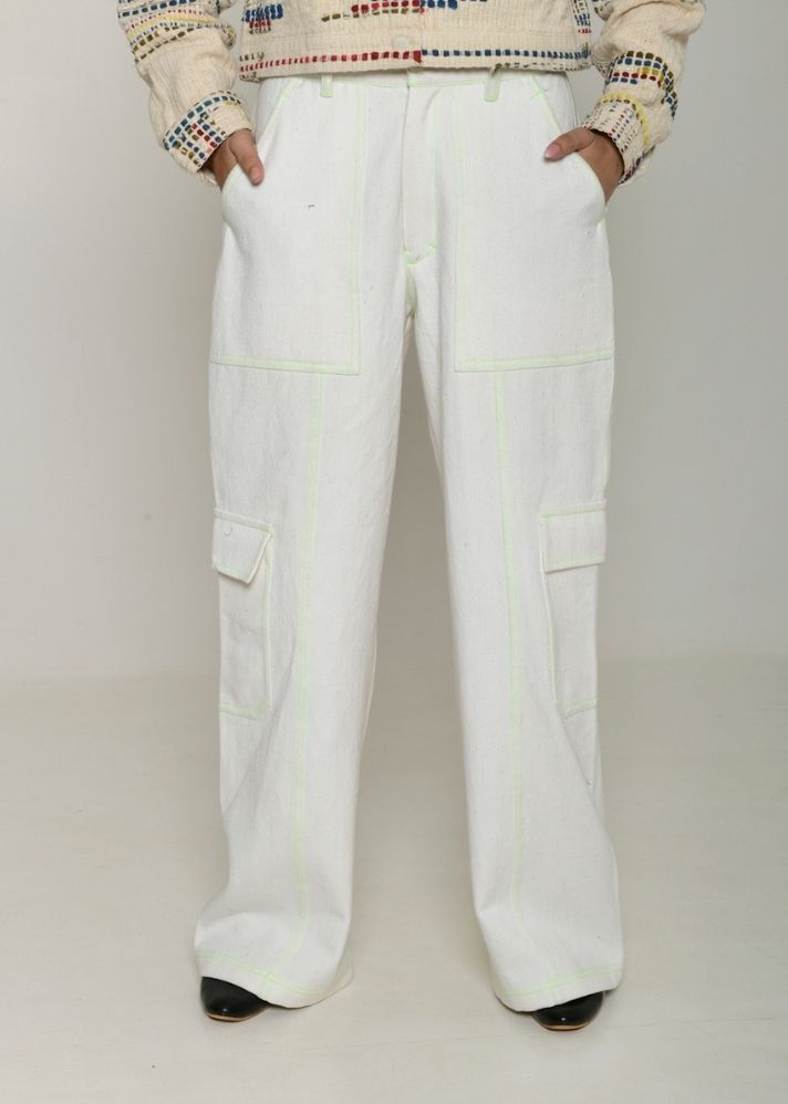 تم تصنيع السراويل المنسوجة يدويًا للجنسين بمهارة باستخدام القماش المعاد تدويره مع تقنية اللحمة الإضافية على أنوال الإطار. كل سترة مصنوعة من مخلفات التصنيع الخاصة بشركة Rias Jaipur والتي تم جمعها خلال العام الماضي، وخضعت لعملية إعادة نسج وإعادة تصميم دقيقة للحصول على مظهر جديد وفريد من نوعه. تم إنشاء خيار الموضة المستدام والصديق للبيئة هذا بالكامل من القطن بنسبة 100%. يرجى ملاحظة أن السترة غير مؤهلة للإرجاع، ولكن يمكن تخصيصها حسب المقاس والطول المفضل لديك، مما يضمن إضافة شخصية وأنيقة إلى خزانة ملابسك.