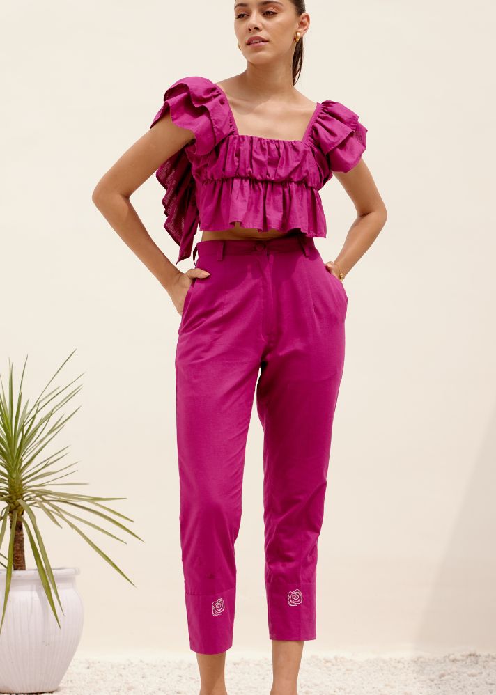 بنطال بأرجل مستقيمة بطول الكاحل - أرجواني