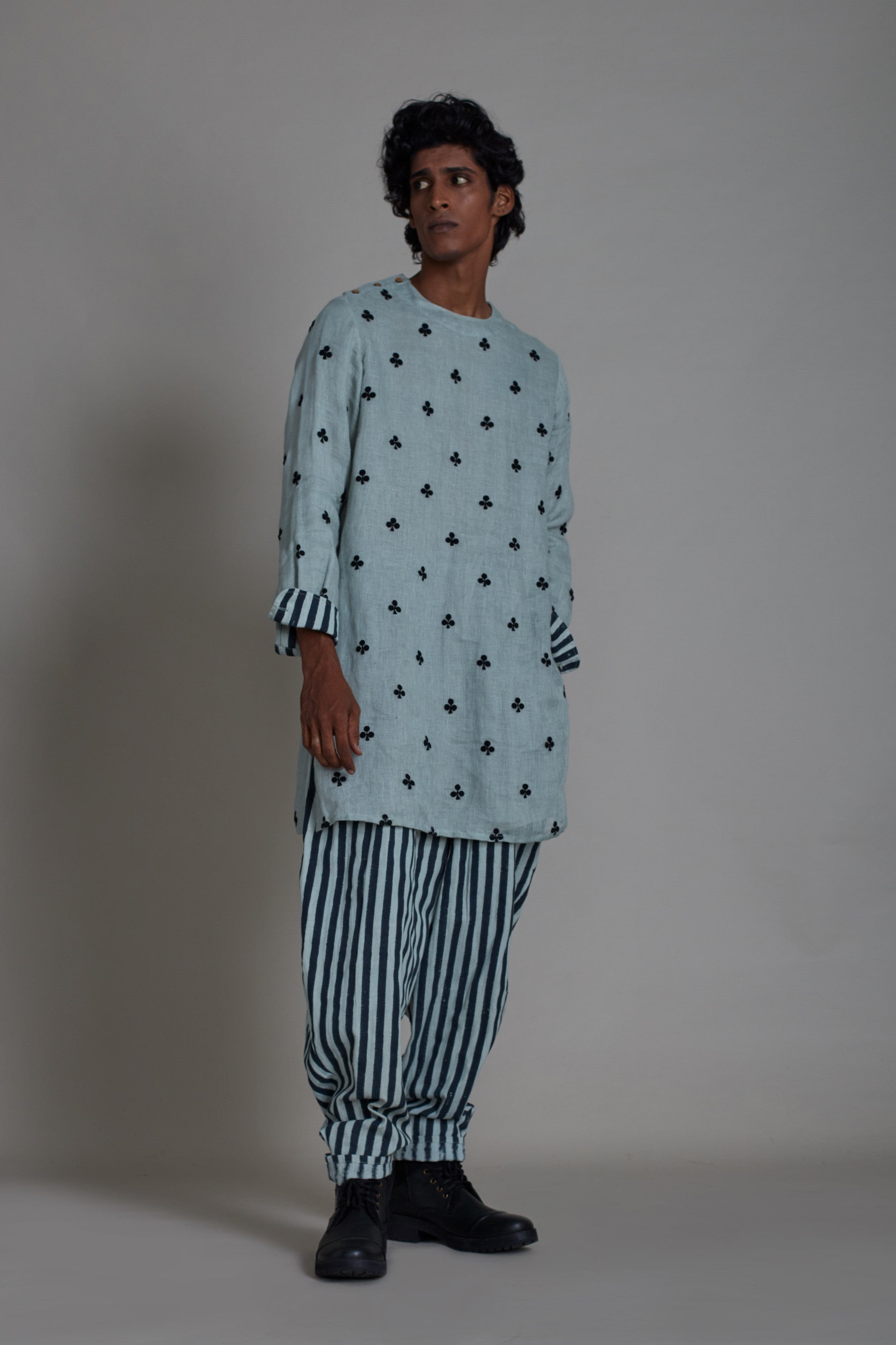 طقم رجالي مكون من قرطق هندي وبنطال بأرجل بالونية - أزرق