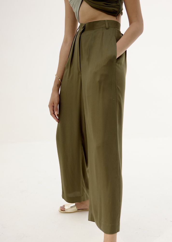 لونا - بنطال بثنيات - أخضر