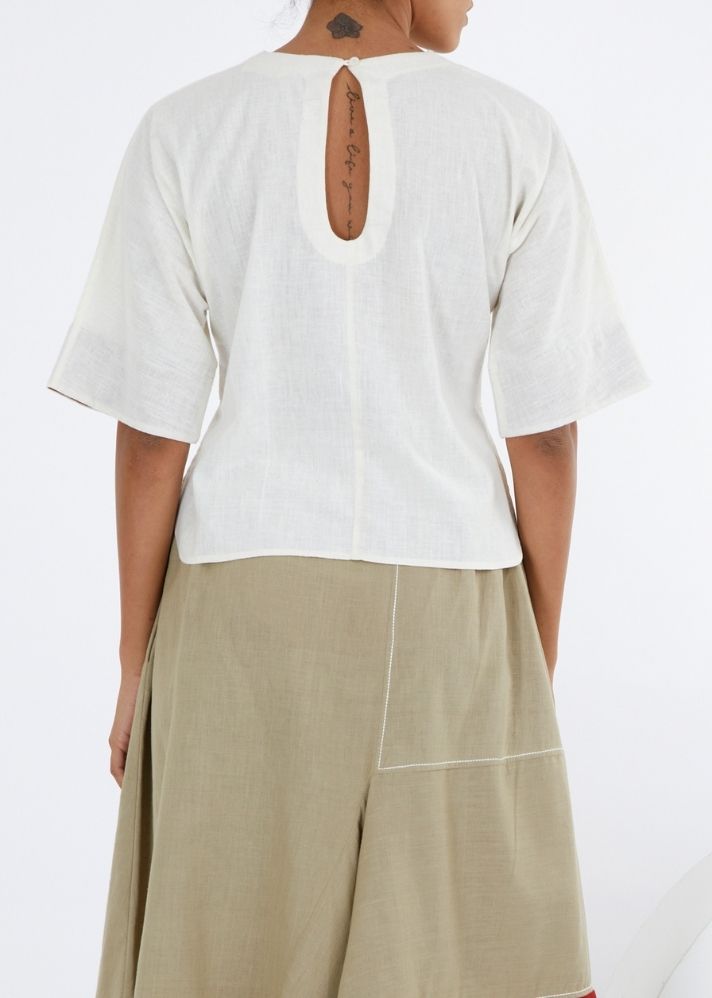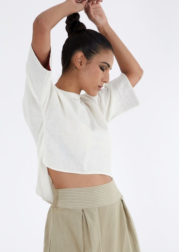 يعد هذا القميص العاجي القصير الخيار الأمثل لأي موسم حيث يوفر تصميمه الأساسي مقاسًا مريحًا يضمن الراحة طوال اليوم دون التضحية بالأناقة، في حين أن لمساته الرائعة ترفعه إلى مصاف الفخامة حقًا.