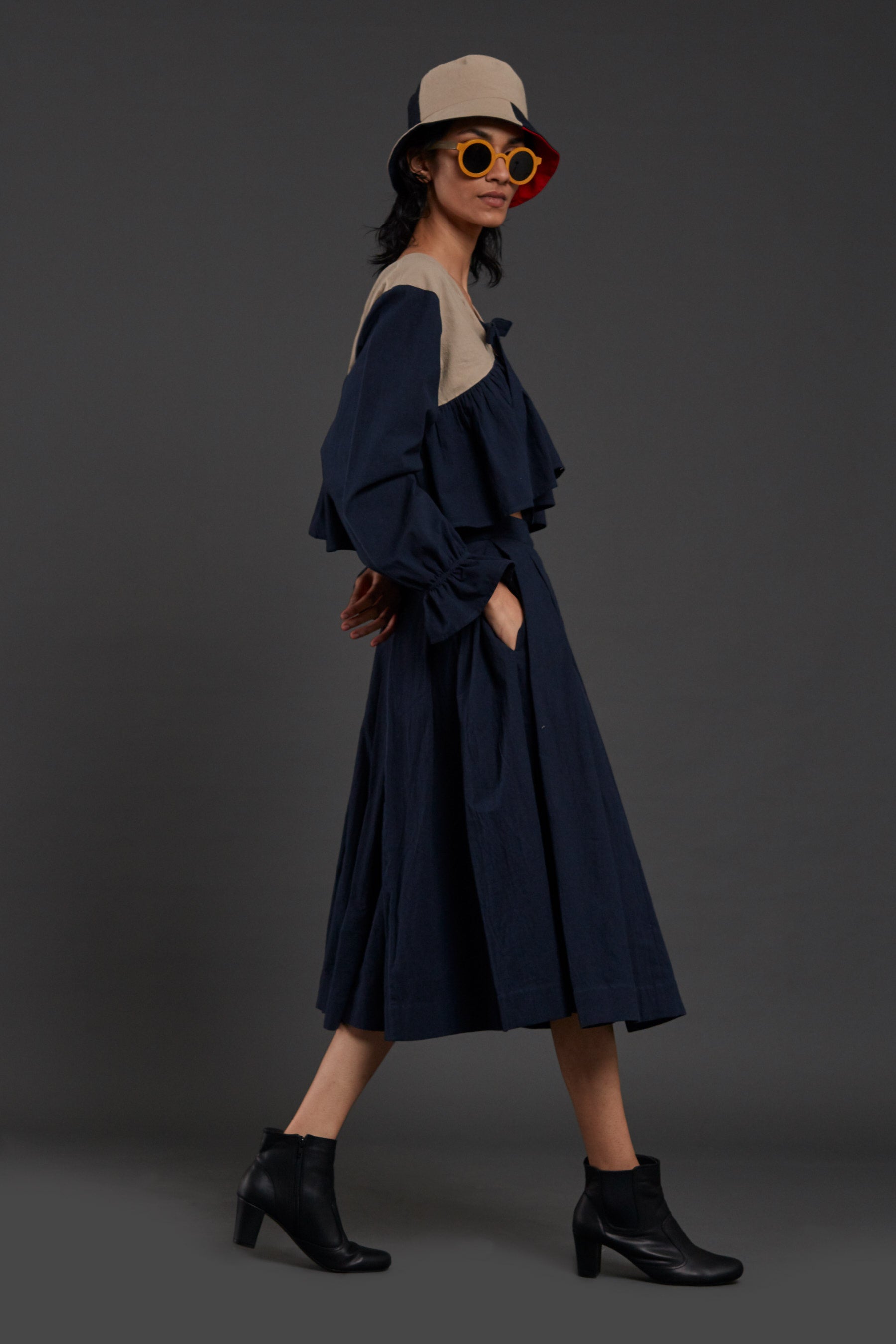 توب بربطة فيونكة - كحلي وبيج