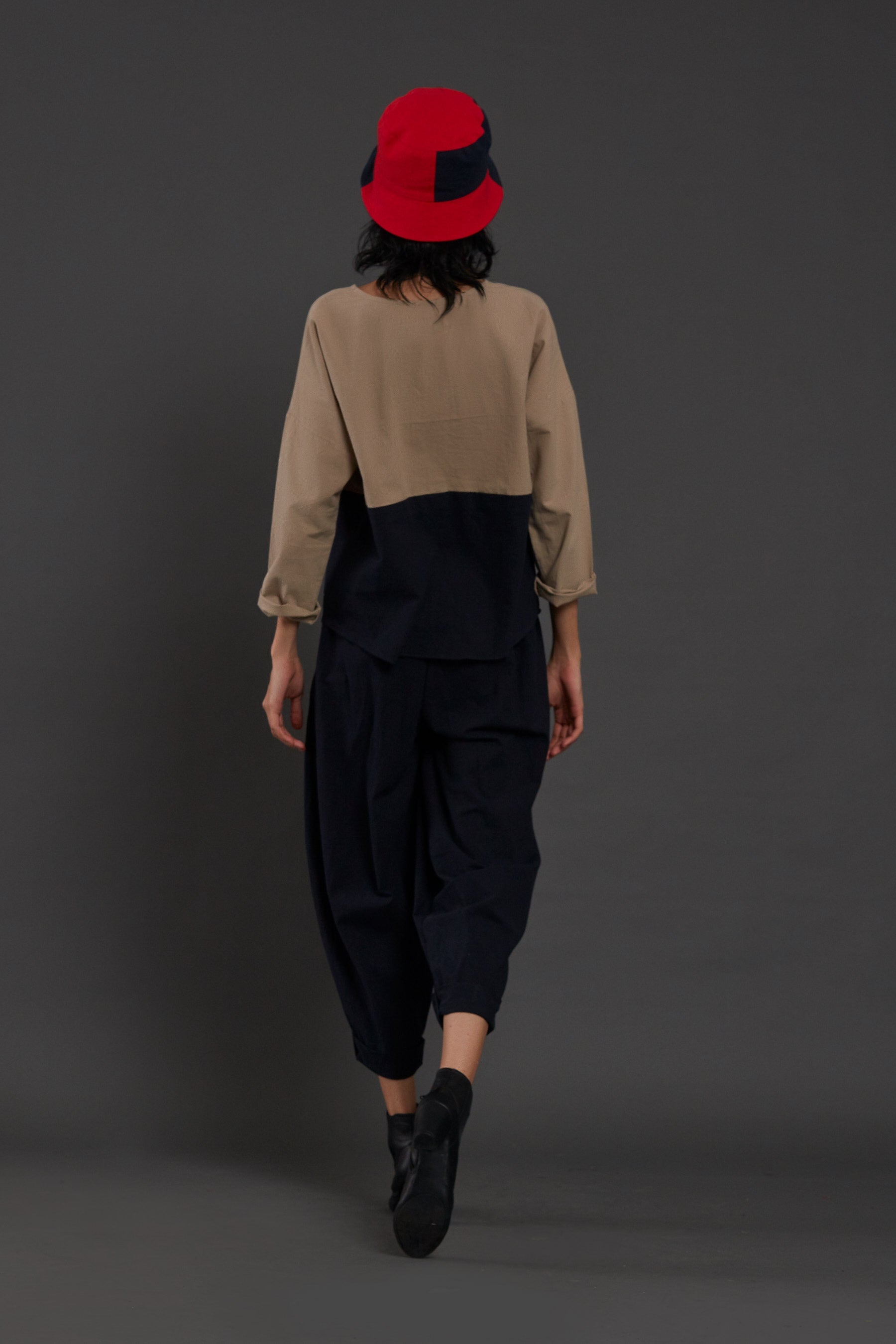 طقم ريكين بلوزة وبنطال - بيج وكحلي