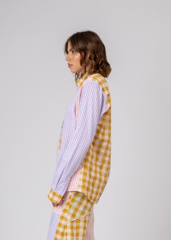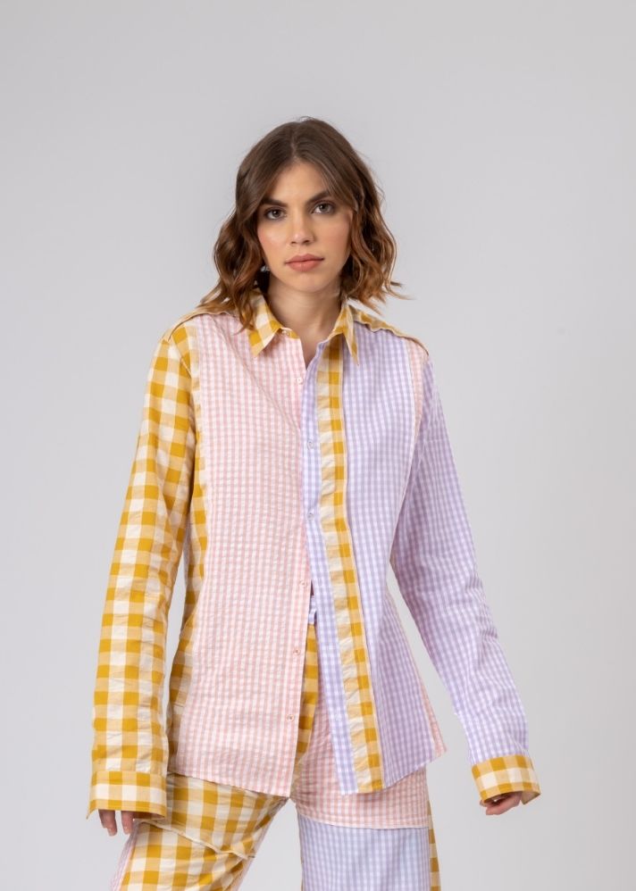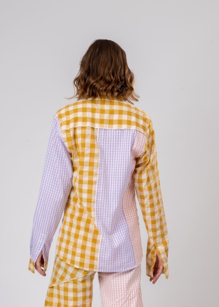 "قميص بأجزاء وأكمام كاملة. صنع في الهند: هذا المنتج مصنوع في دلهي من خلال مصنع بأجور عادلة. المصنع متخصص في الإنتاج على نطاق صغير، حيث يمكننا تقليل توليد النفايات وإدارة نفايات المصنع عن طريق إعادة تدوير الخردة إلى نسيج مرقع. قد تأتي كل قطعة مع تطريز أو رقعة إضافية ولكن الشكل والمظهر العام للقطعة لا يتغير. هذه القطع هي جزء من مجموعة ذات إصدار محدود، ويتم تصنيع المخزون حتى تتوفر المواد الخام."