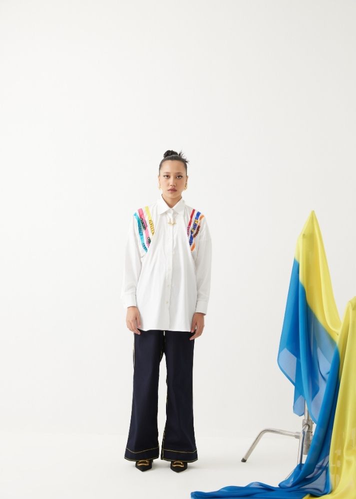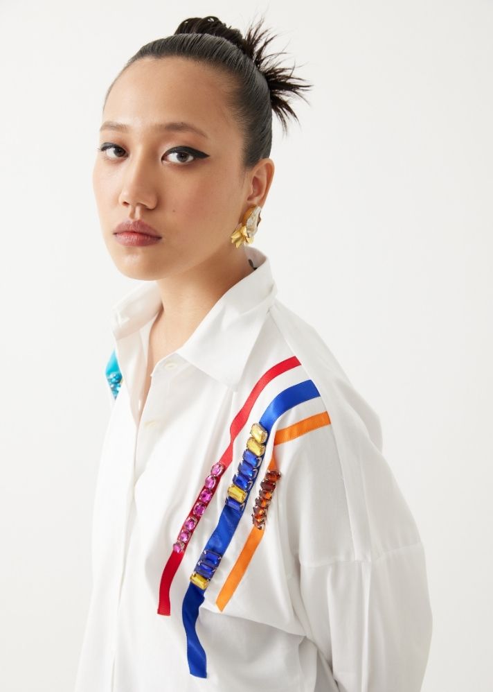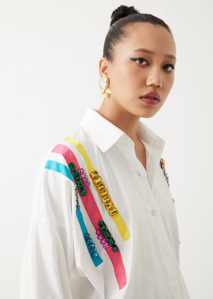 قميص بوبلين مربع مطرز