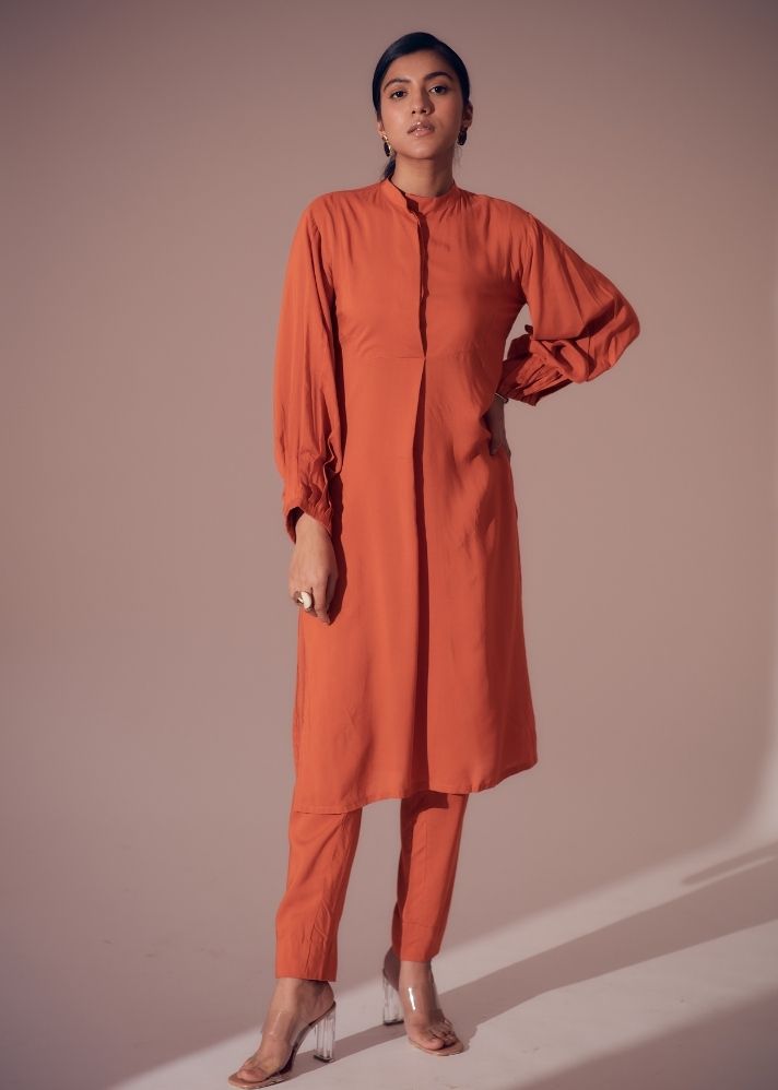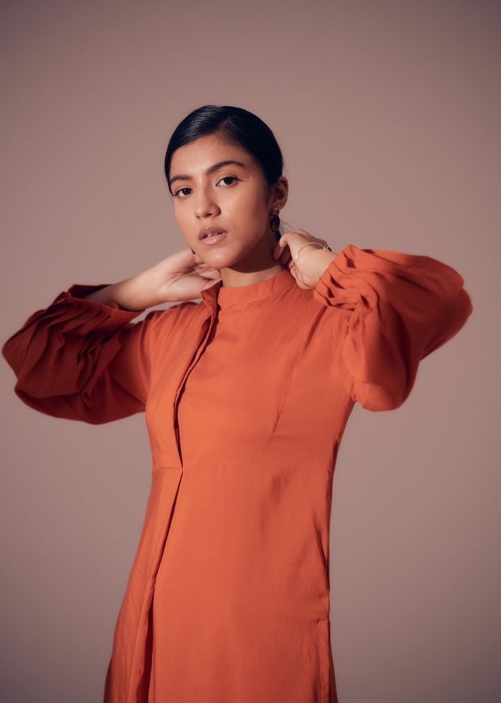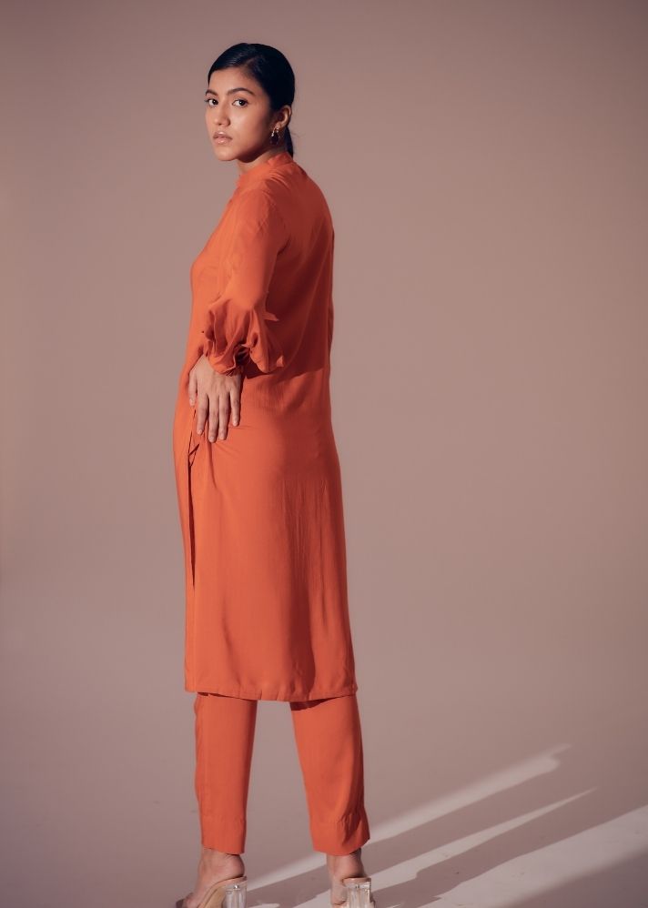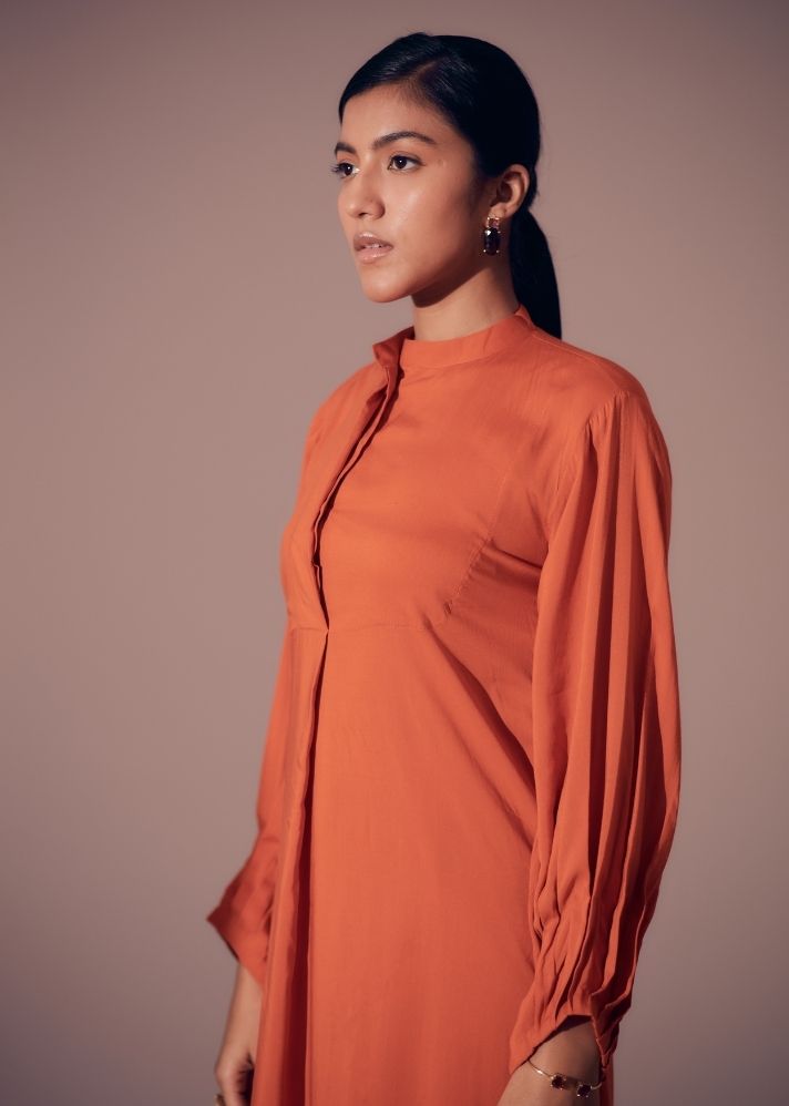 قميص نابا طويل - بلون برتقالي غروب الشمس
