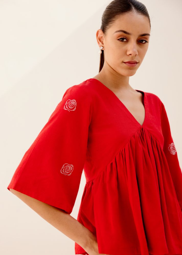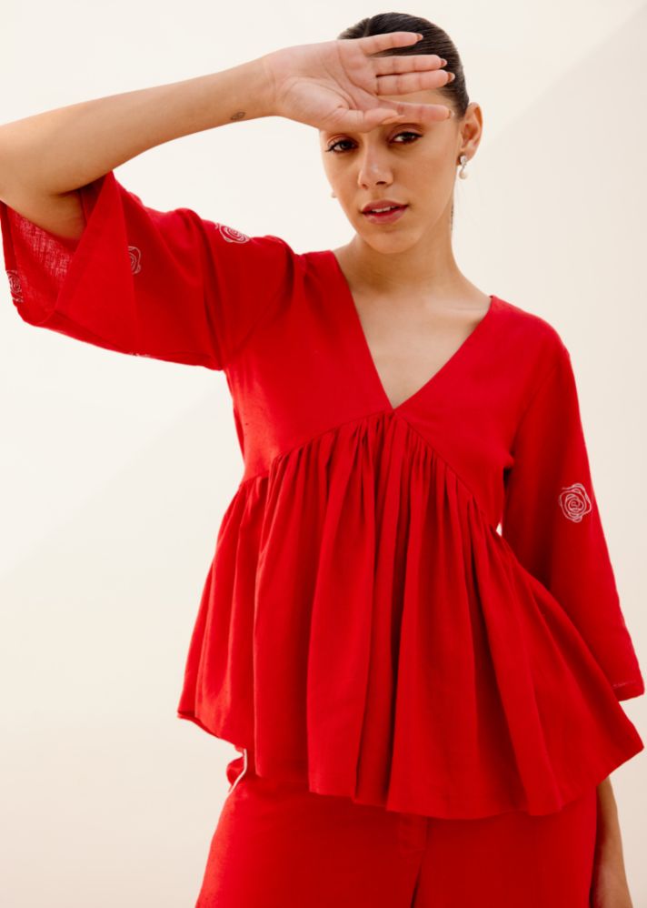 ميا - توب بفتحة عنق على شكل حرف V - أحمر
