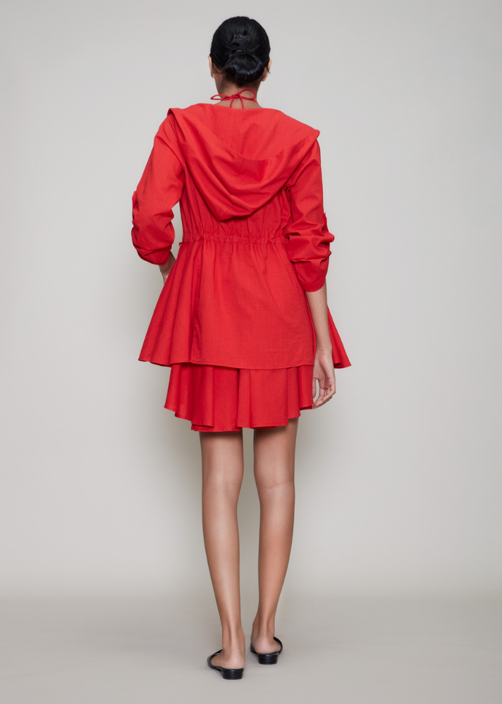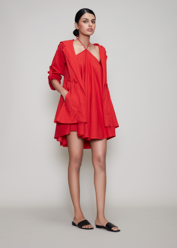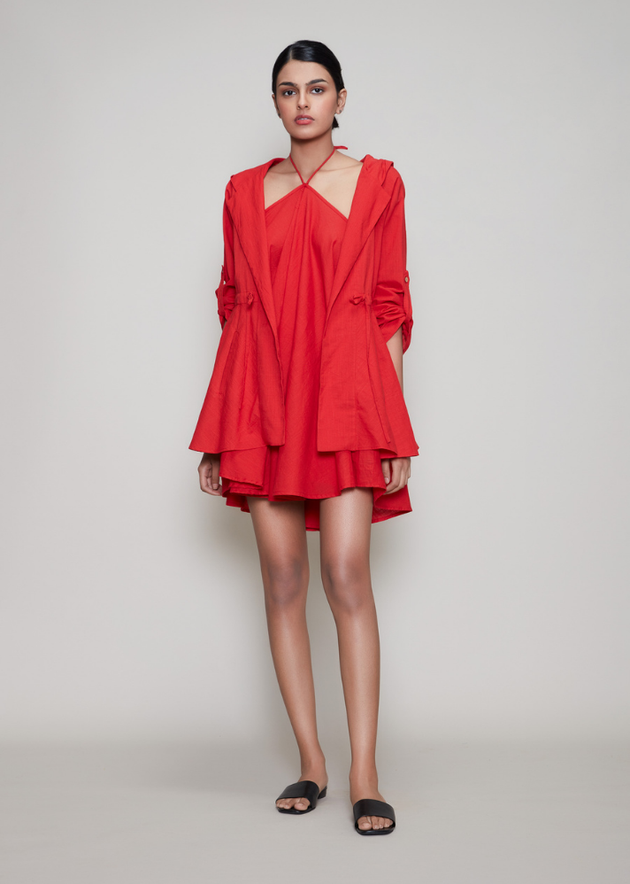 طقم فستان فيزا وسترة أحمر