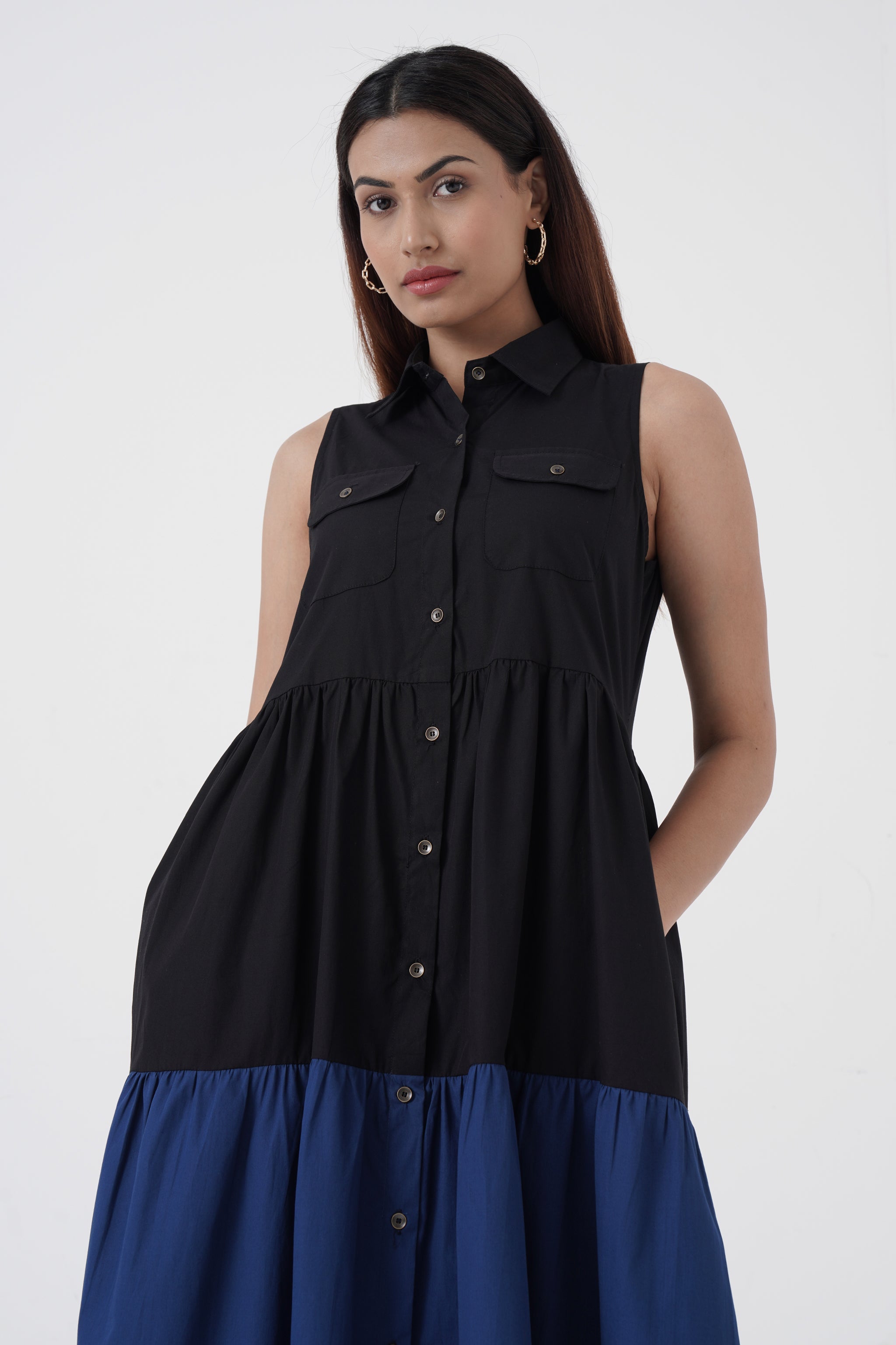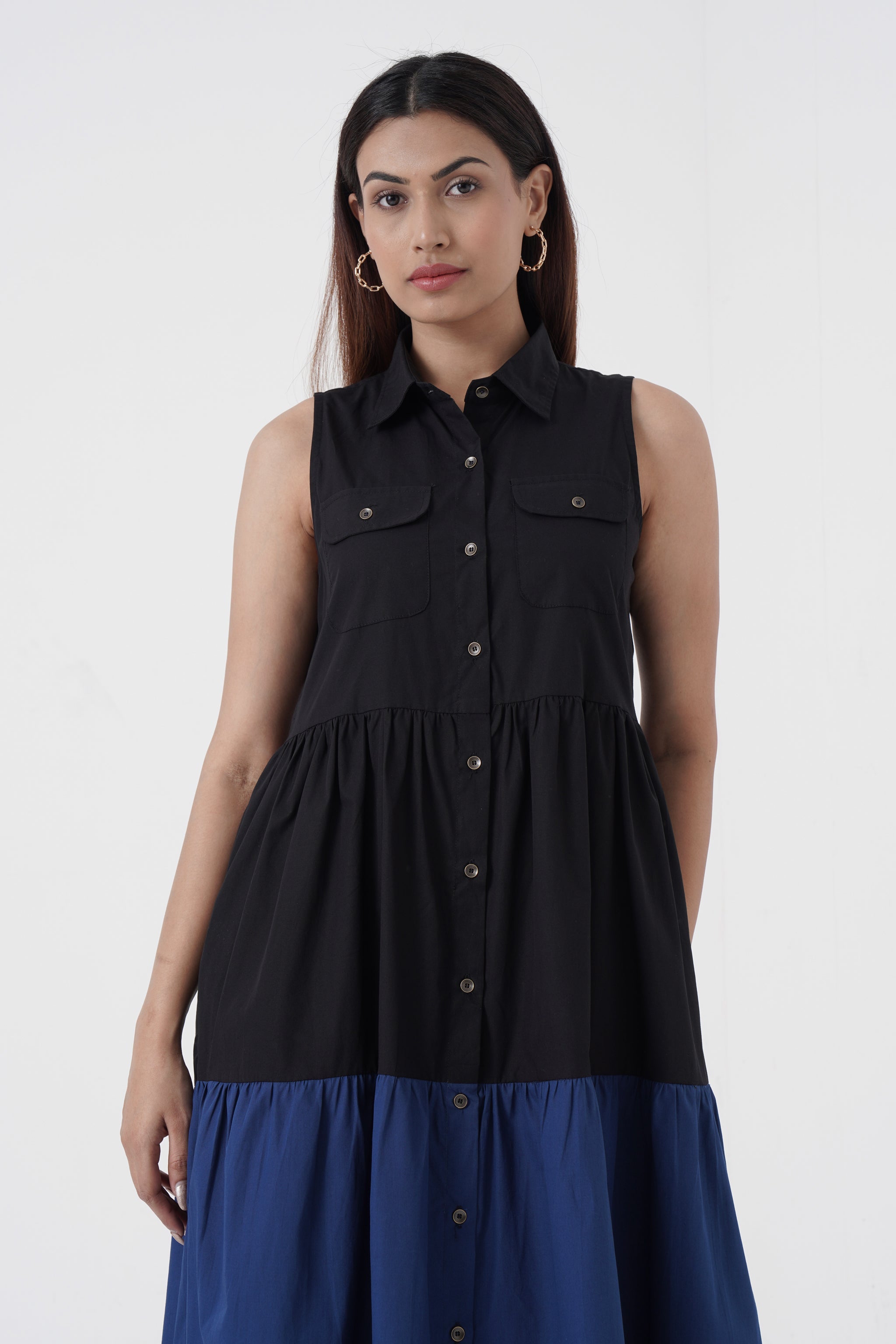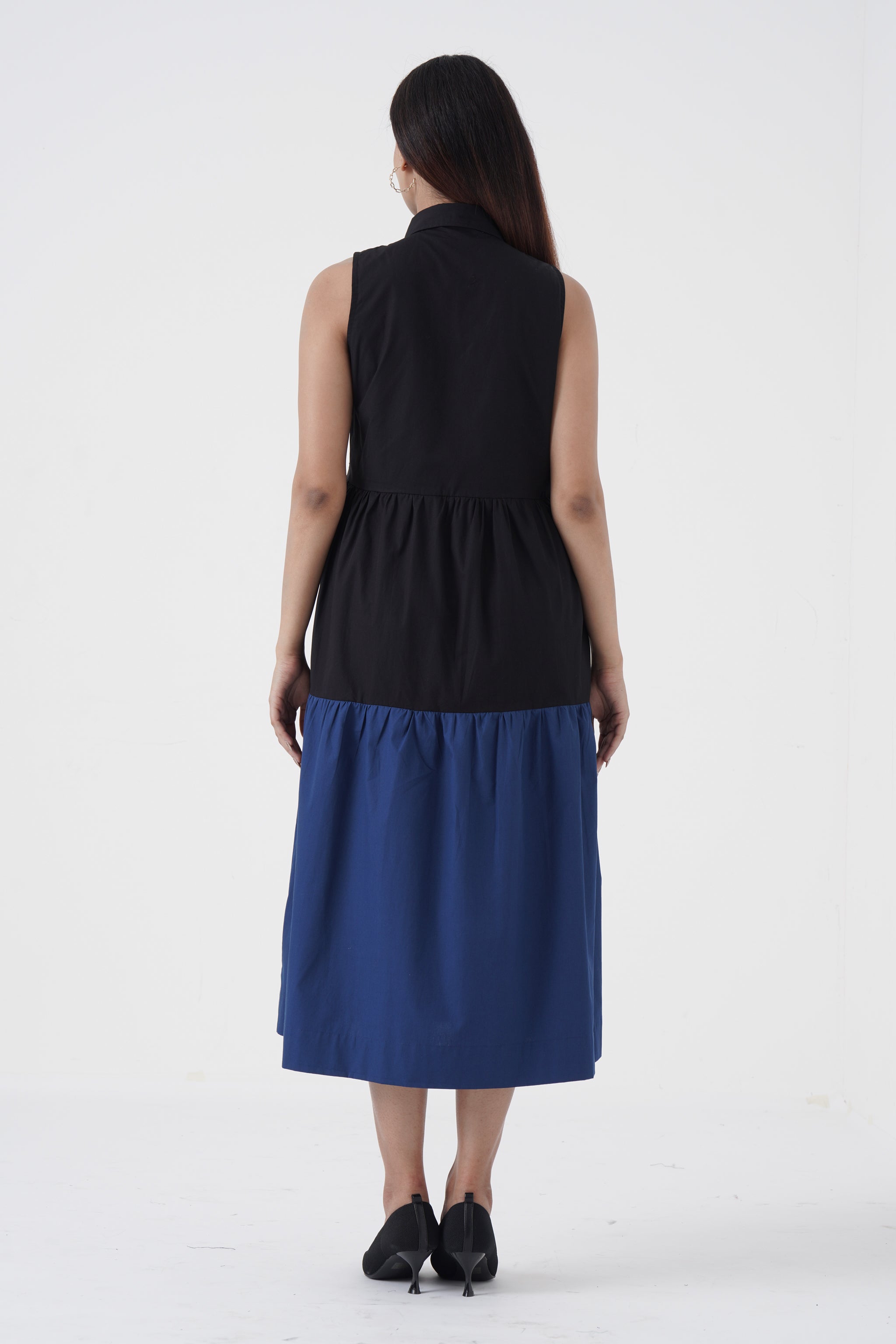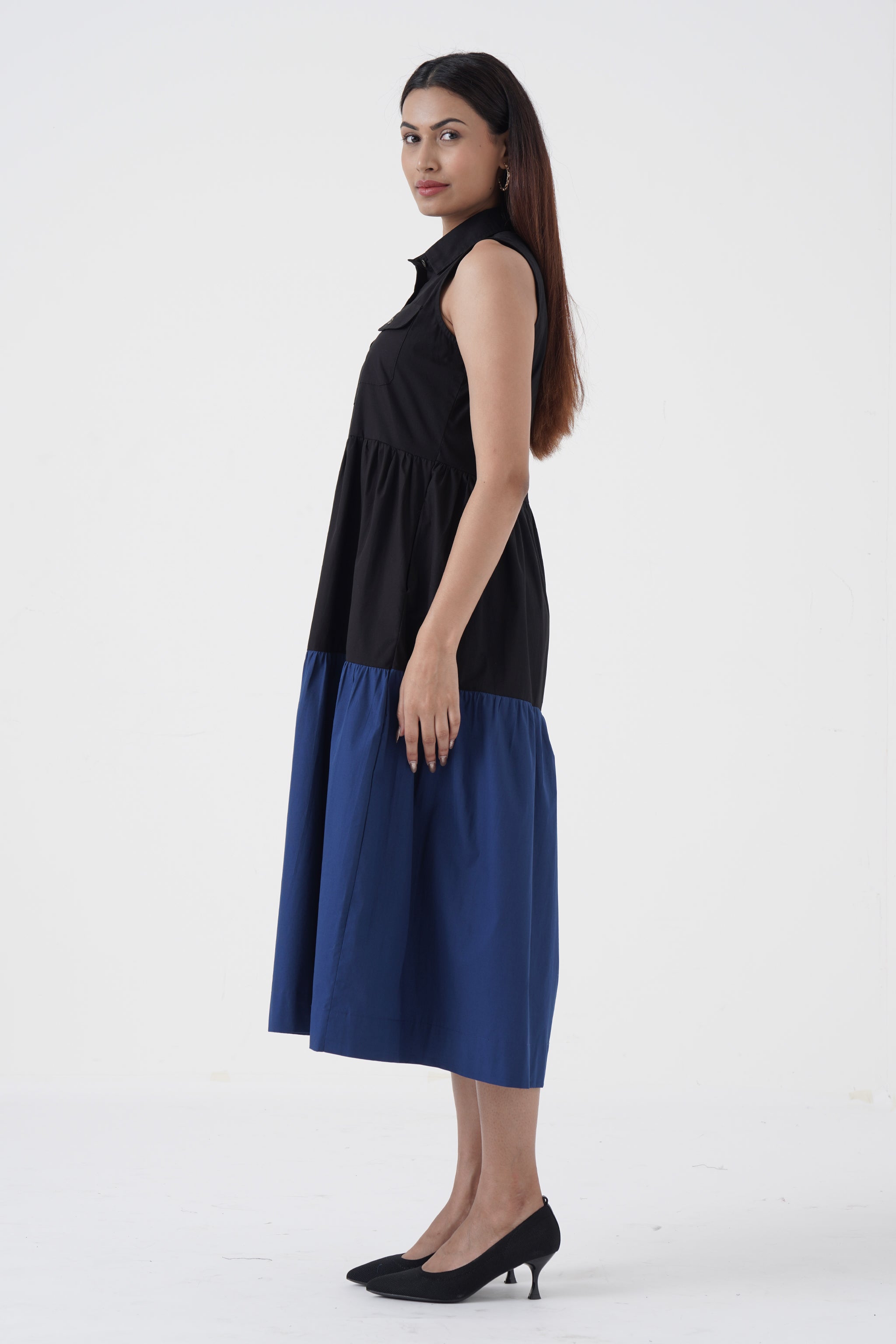 أفايل - فستان بياقة قميص وبتصميم ثنيات - أزرق