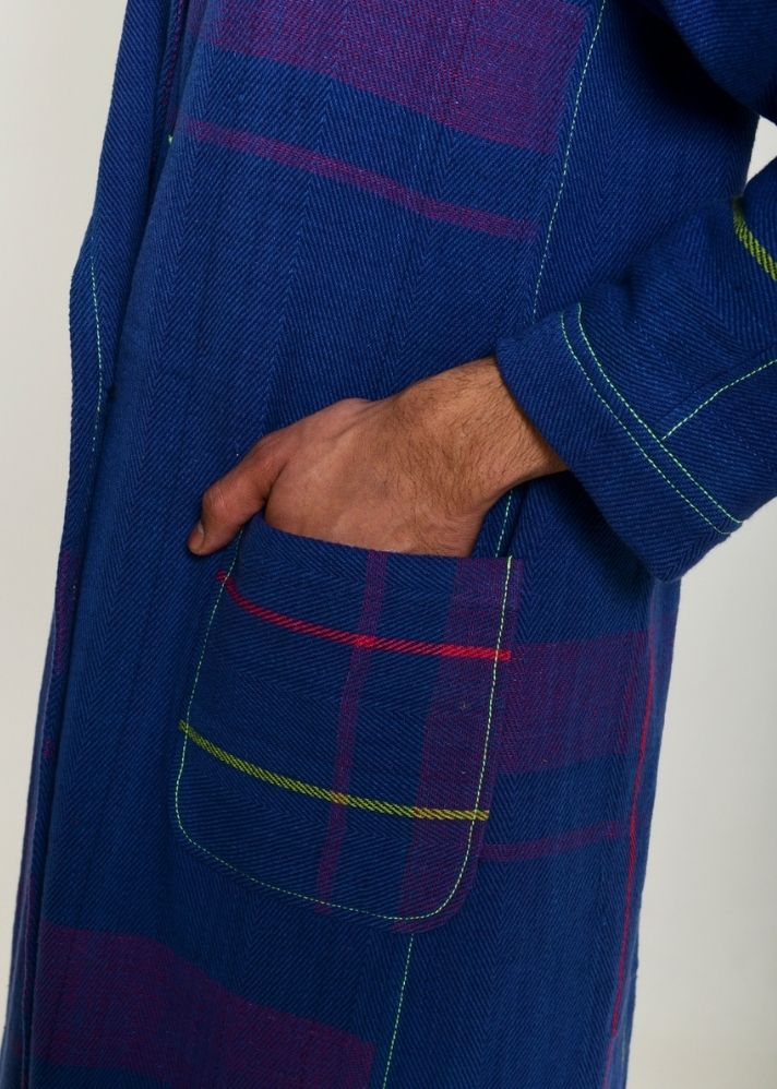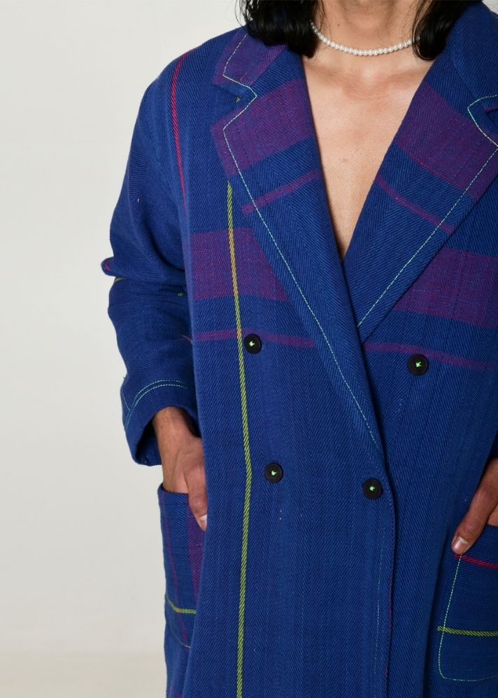 معطف واق من المطر منسوج يدويًا للجنسين مصنوع بمهارة باستخدام القماش المعاد تدويره مع تقنية اللحمة الإضافية على أنوال الإطار. كل سترة مصنوعة من مخلفات التصنيع الخاصة بشركة Rias Jaipur والتي تم جمعها خلال العام الماضي، وخضعت لعملية إعادة نسج وإعادة تصميم دقيقة للحصول على مظهر جديد وفريد من نوعه. تم إنشاء خيار الموضة المستدام والصديق للبيئة هذا بالكامل من القطن بنسبة 100%. يرجى ملاحظة أن السترة غير مؤهلة للإرجاع، ولكن يمكن تخصيصها حسب المقاس والطول المفضل لديك، مما يضمن إضافة شخصية وأنيقة إلى خزانة ملابسك.