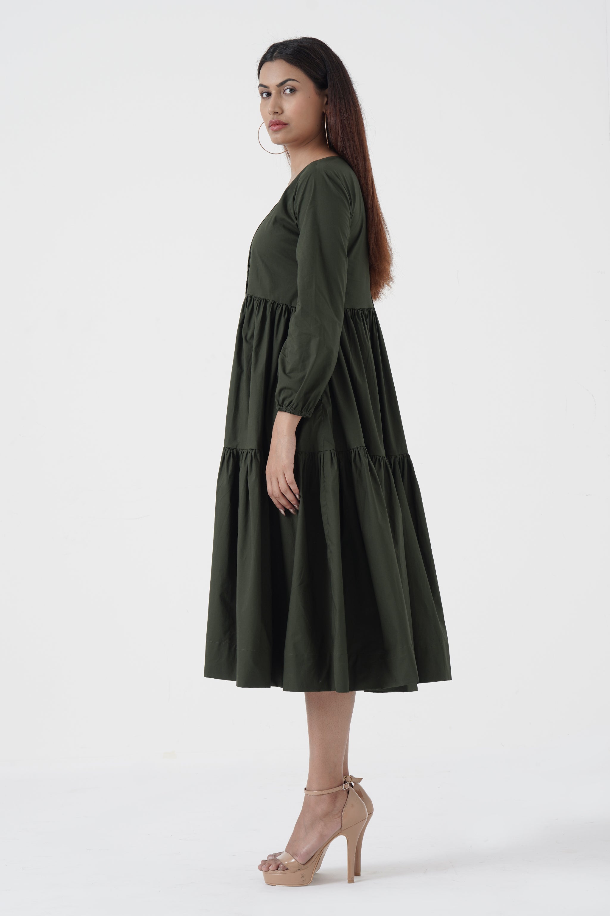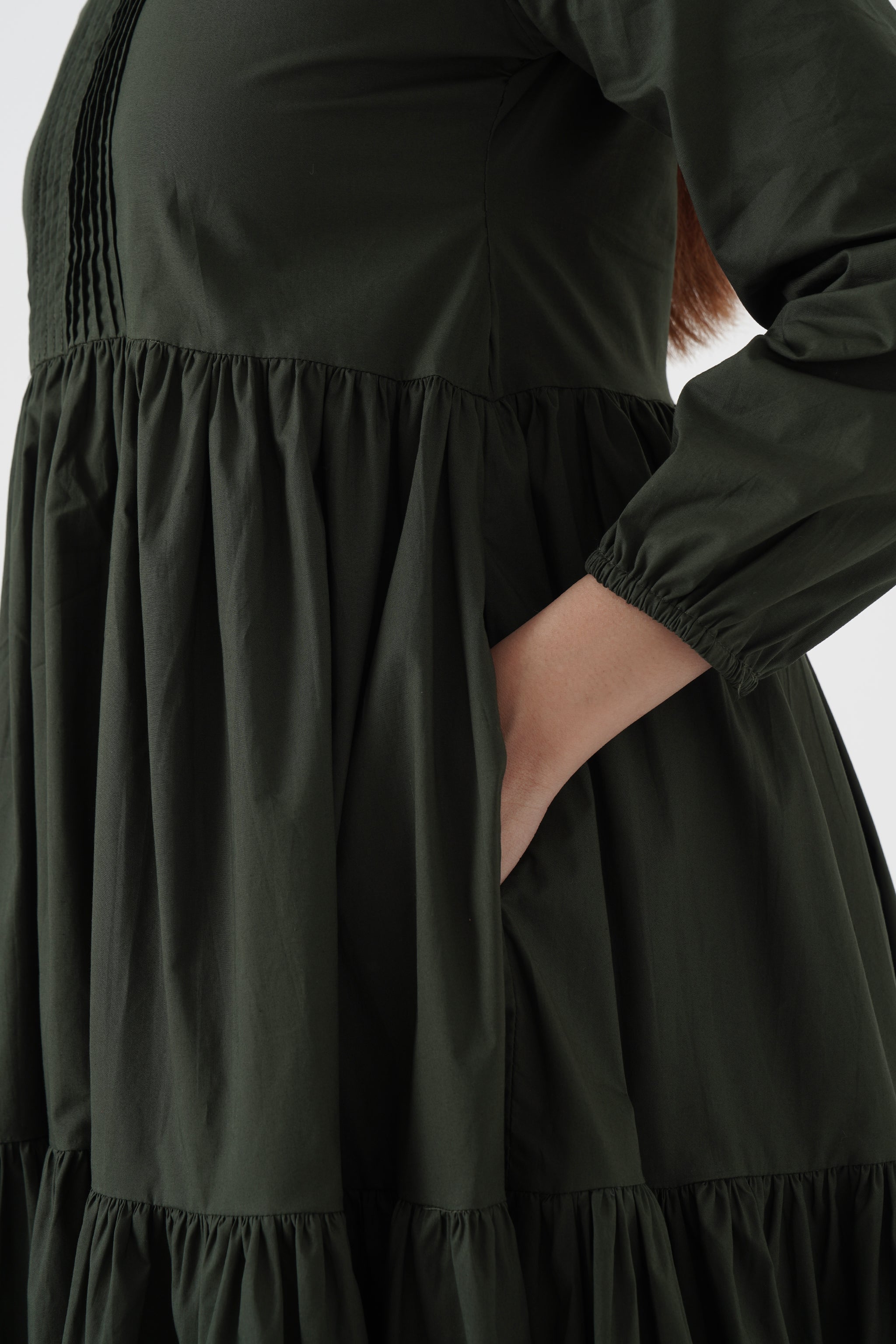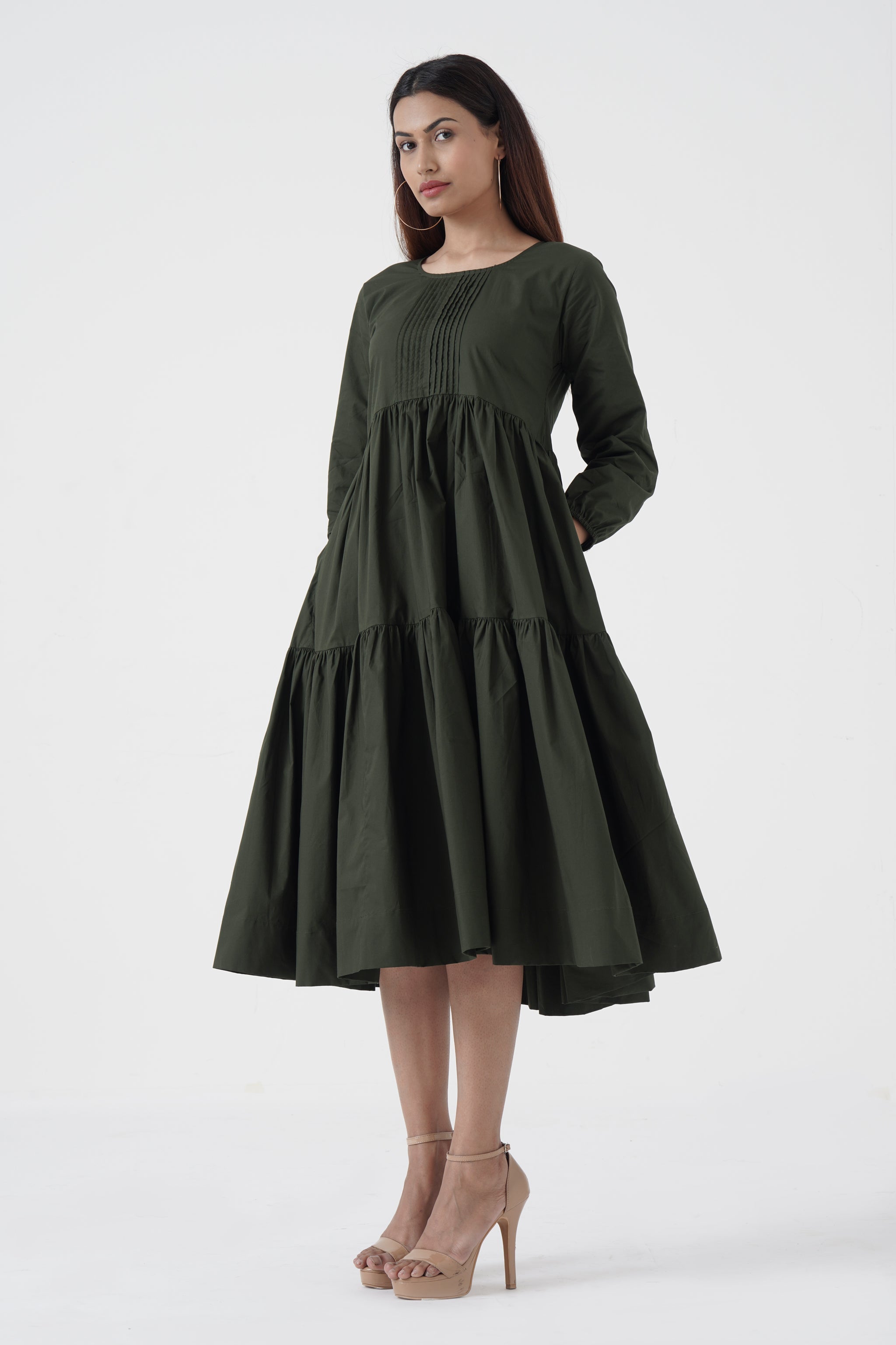 باستلنغ سول - فستان بثنيات وفتحة من الظهر - أخضر