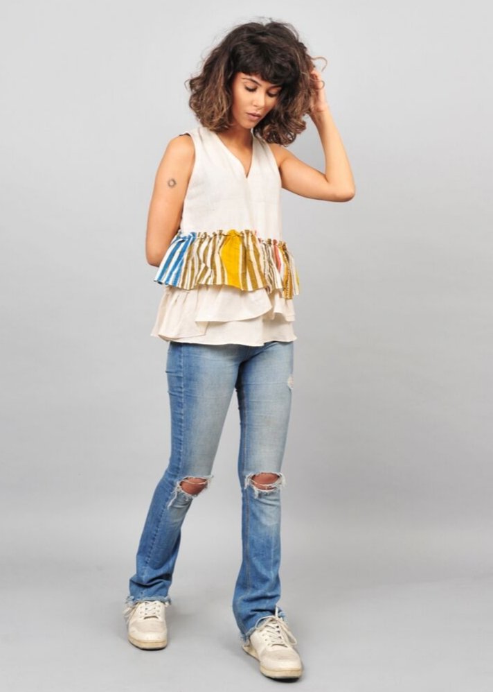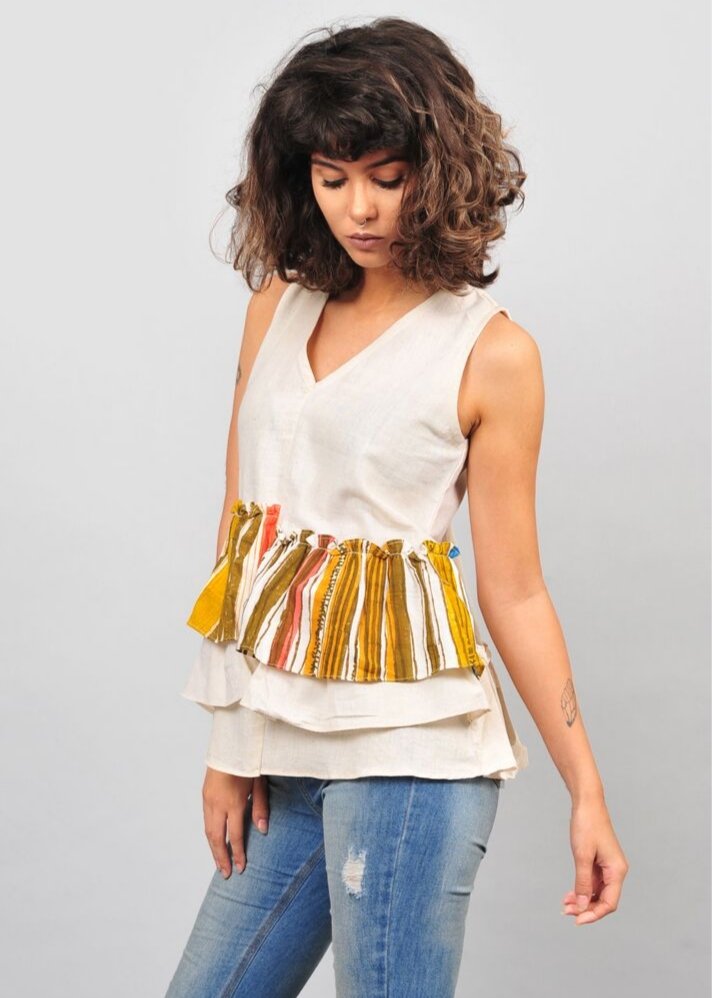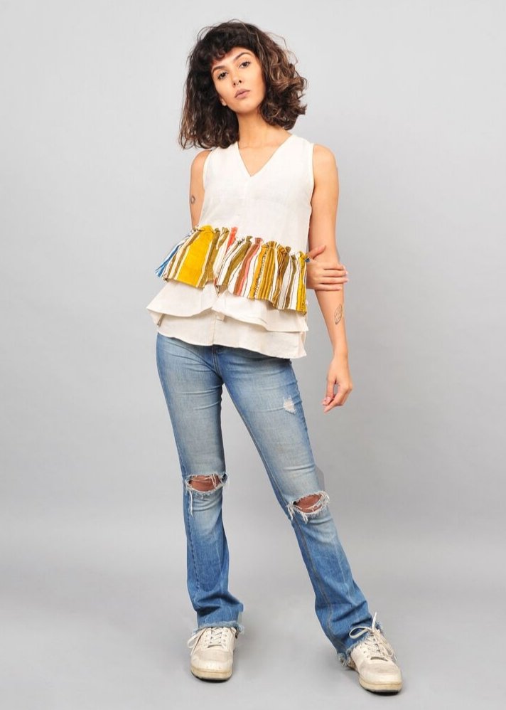 بلوزة بأكمام وكشكشة
