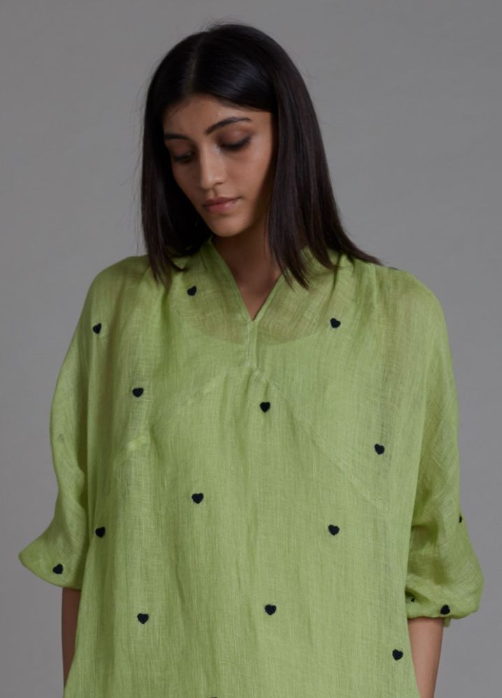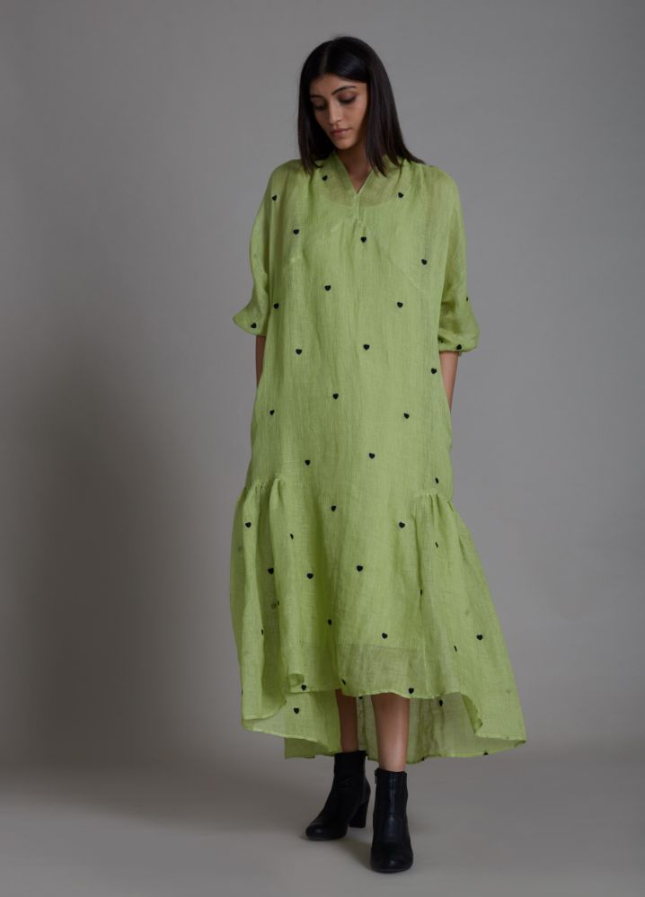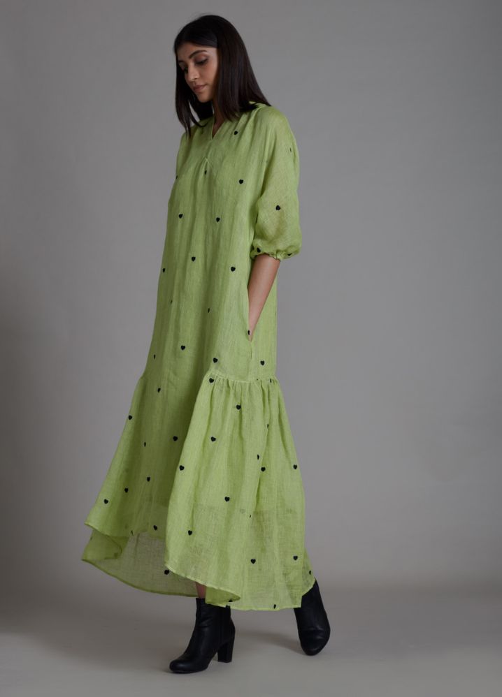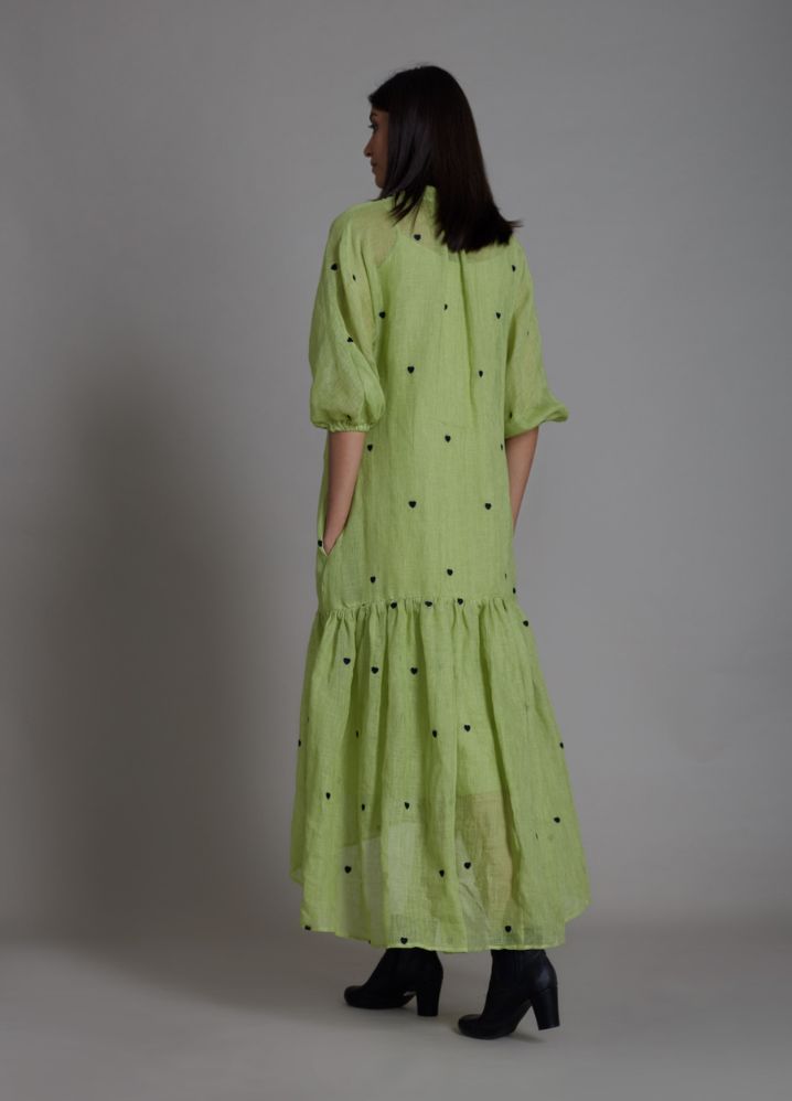 تايني - فستان ميدي بطبعات قلب صغيرة - اخضر