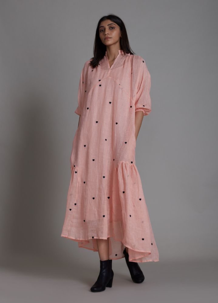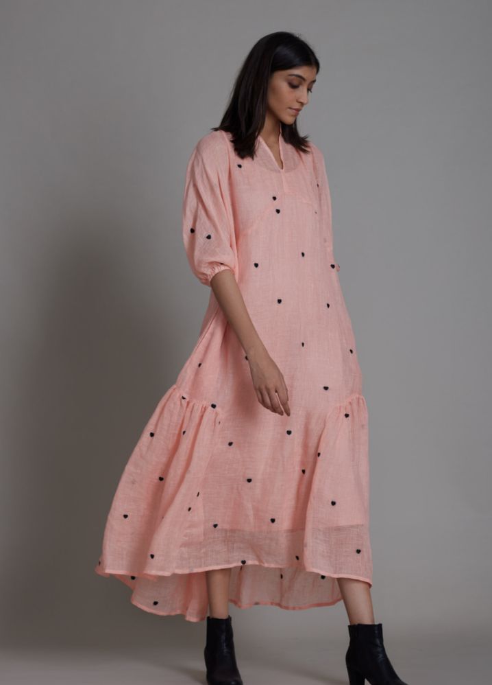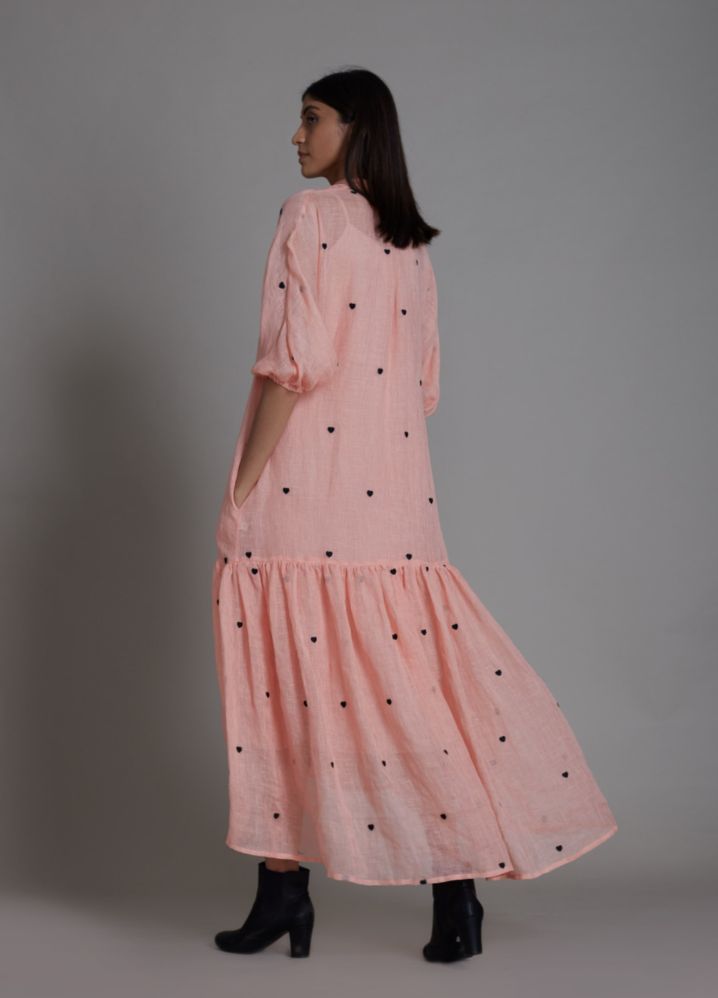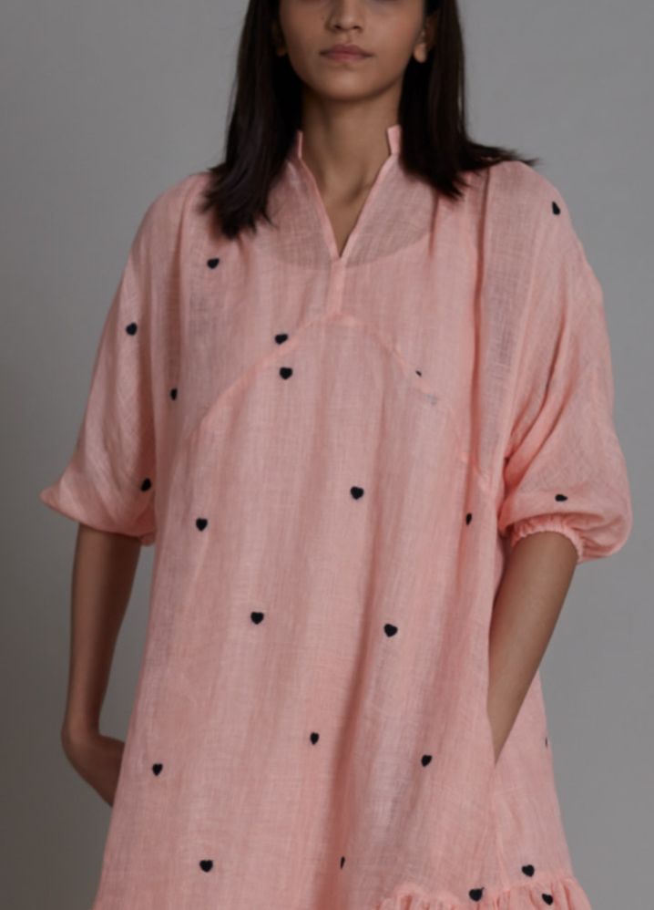 تايني - فستان ميدي بطبعات قلب صغيرة - زهري