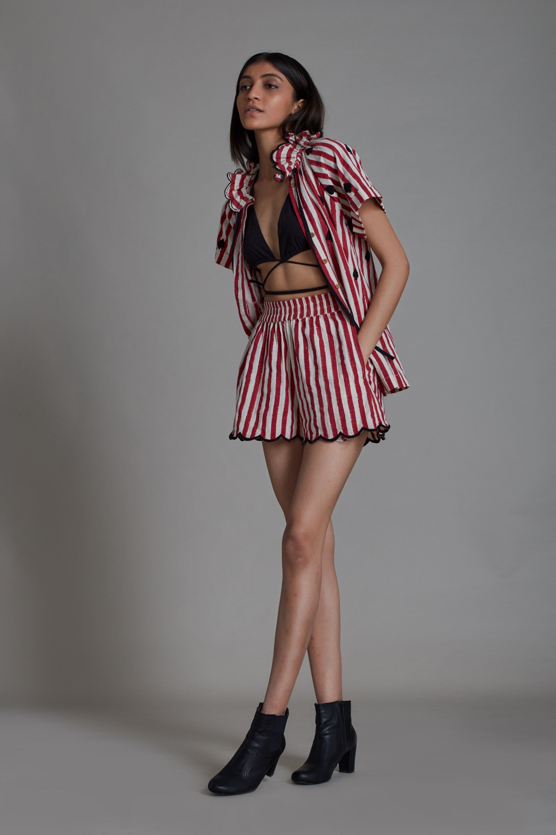 تورا - طقم نسائي مقلم بالأحمر (مكون من 3 قطع)